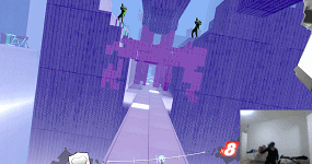 戴上Pico G2进入游戏后,你站在一个类似于虚拟电动步行道的上面,它会带你行走于画风迷幻、扭曲的环境中。分布着地下室、庆祝亡灵节的城市、随机爆裂的几何形状。在这走道里,你会看到不断涌出的各种枪手,他们出现的时机刚好和音乐节奏相呼应。
