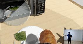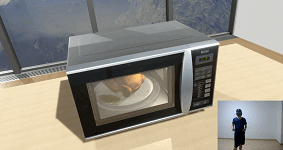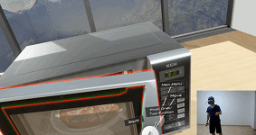 整个游戏都是靠定位手柄进行抓、拖、移动、拿起、或者放下,如果你想在微波炉这个环境吃上一份烤鸡,你可以用手柄拿起烤鸡,放到微波炉里,点击微波炉烘烤时间,也就可以吃上一份烤鸡了,虽然很沙雕,但是能感受一下自己下厨也是非常不错的。