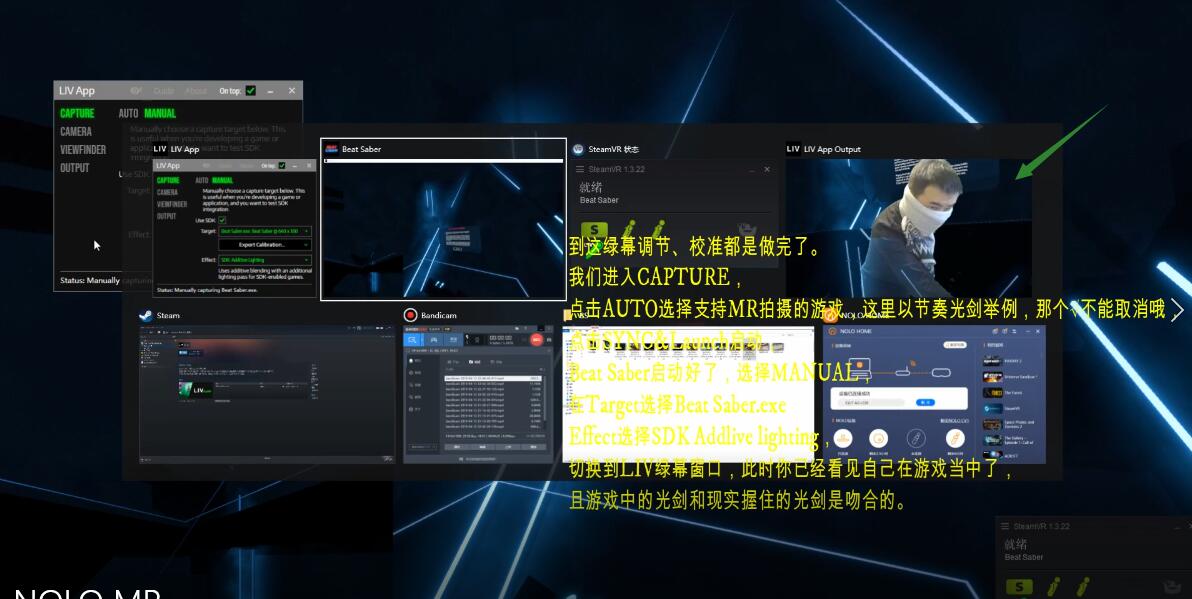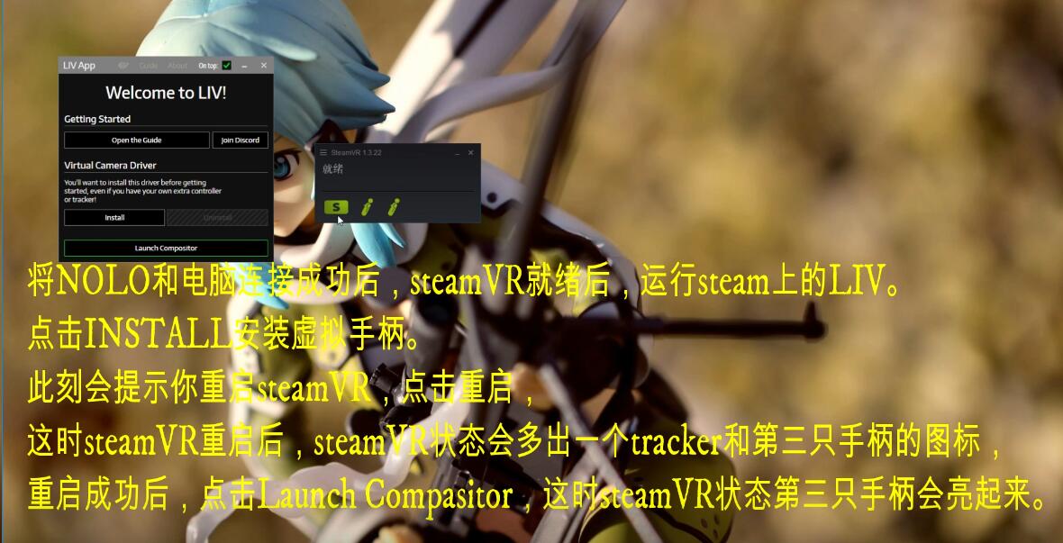 1.将NOLO和你一体机于电脑连接成功后,steamVR就绪后,启动LIV,