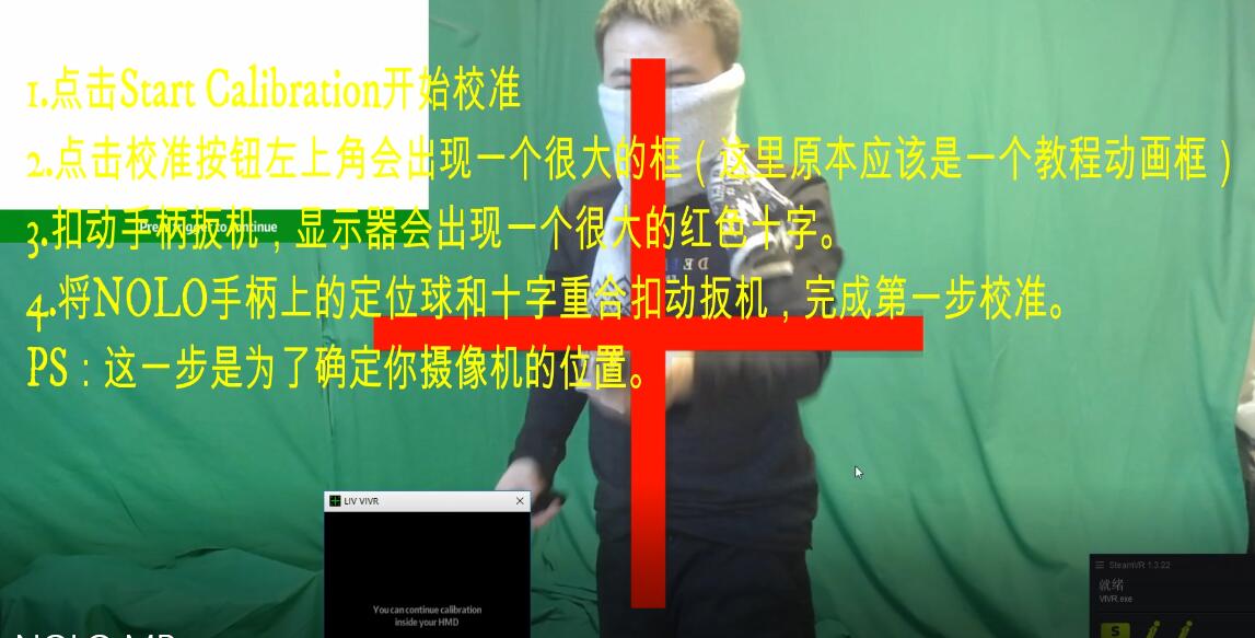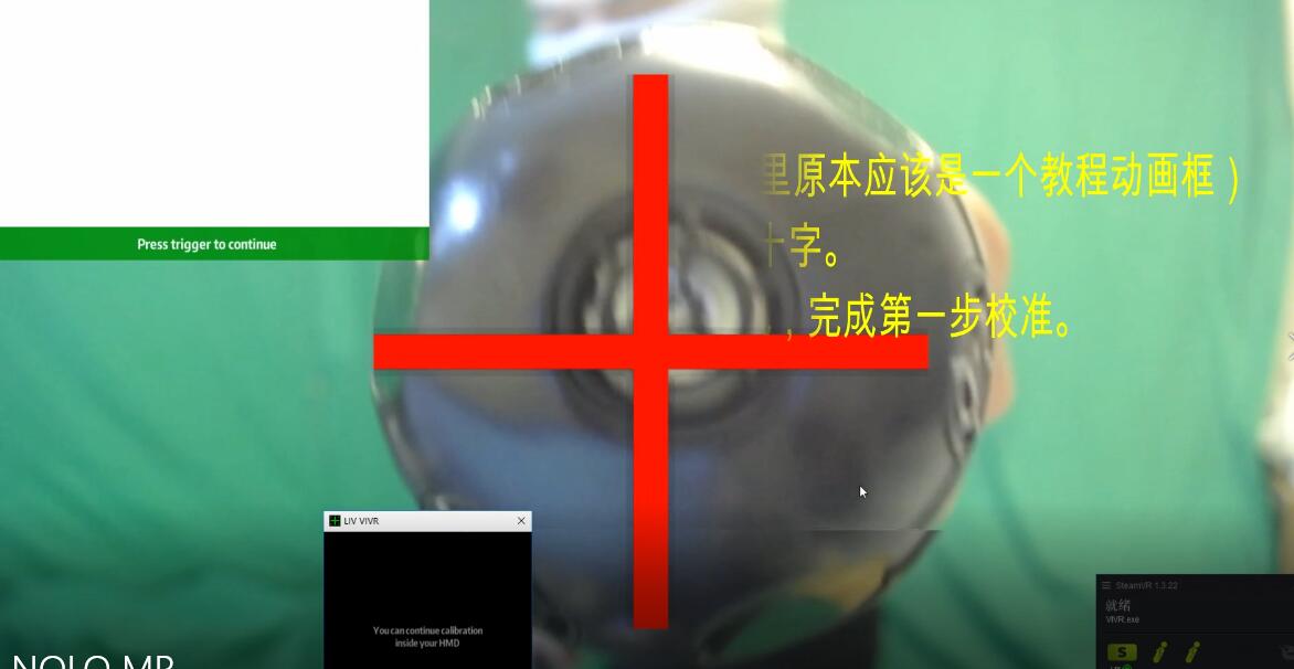 NOLO手柄顶部定位球和十字重合扣动扳机完成第一步校准