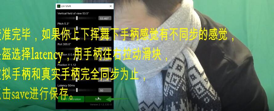 到这里校准已经完成,如果感觉不跟手,戴上头盔选择Lacency,用手柄往右拉动调节到跟手为止。