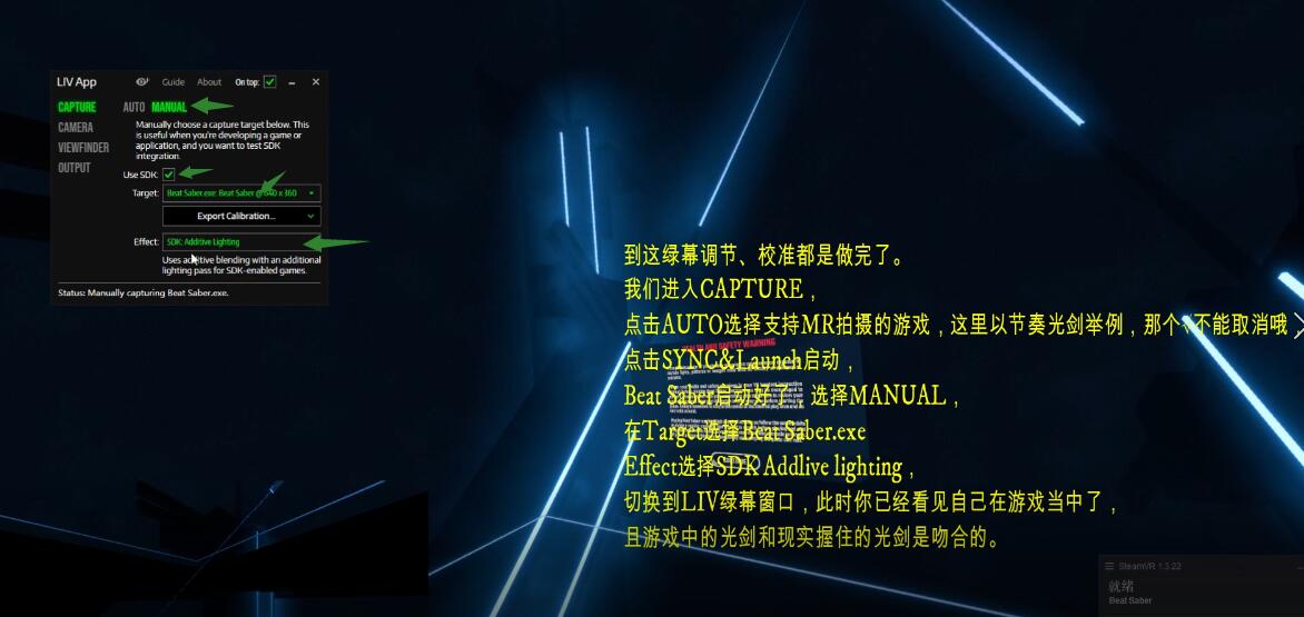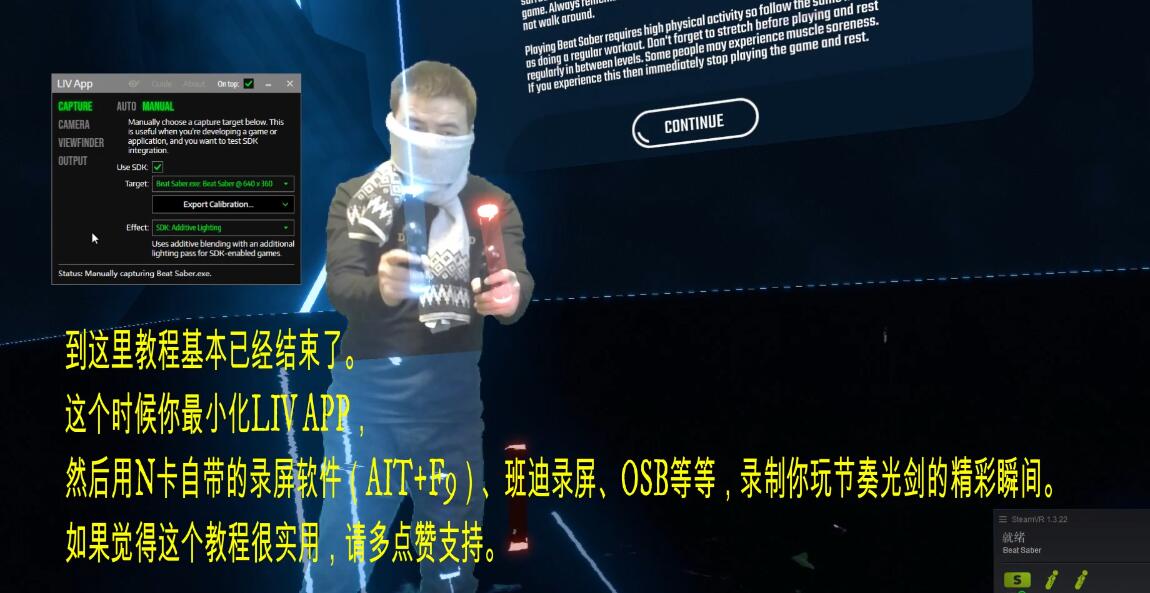 到此校准已经完毕,按照图中所示操作启动游戏,以BEAT saber举例