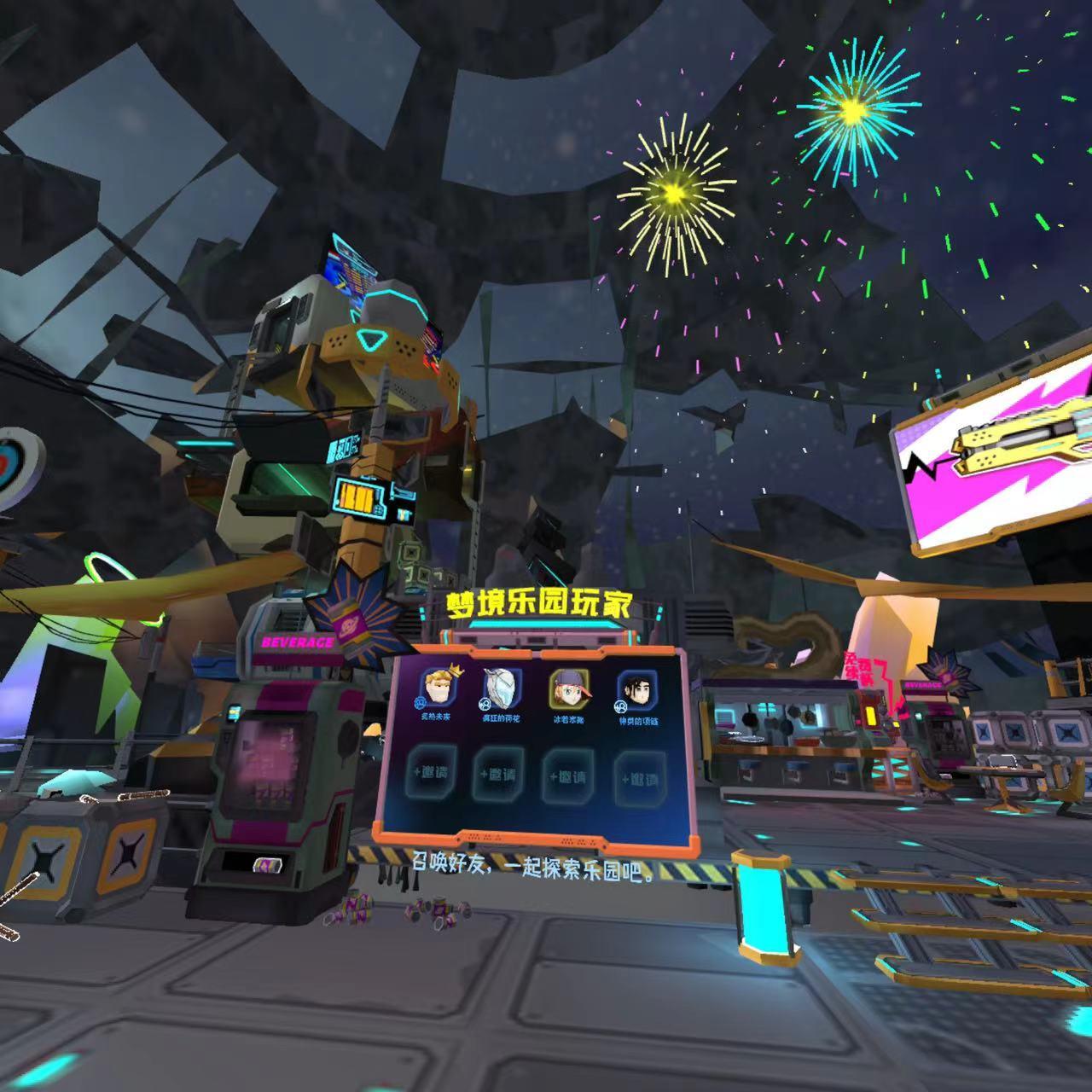 除了玩怎么忘了吃喝哈,游戏打累了,可以来到梦境乐园邀请几位朋友,一起来吃喝玩耍,这里有免费的可乐、烤鱼、烤肉以及面包等,还有泡泡枪和烟花可以放,在中秋节晚上我们可以沉浸在VR的世界,来一场烟花秀,和朋友度过一个美好的时光,也祝所有梦境世界的朋友中秋快乐。