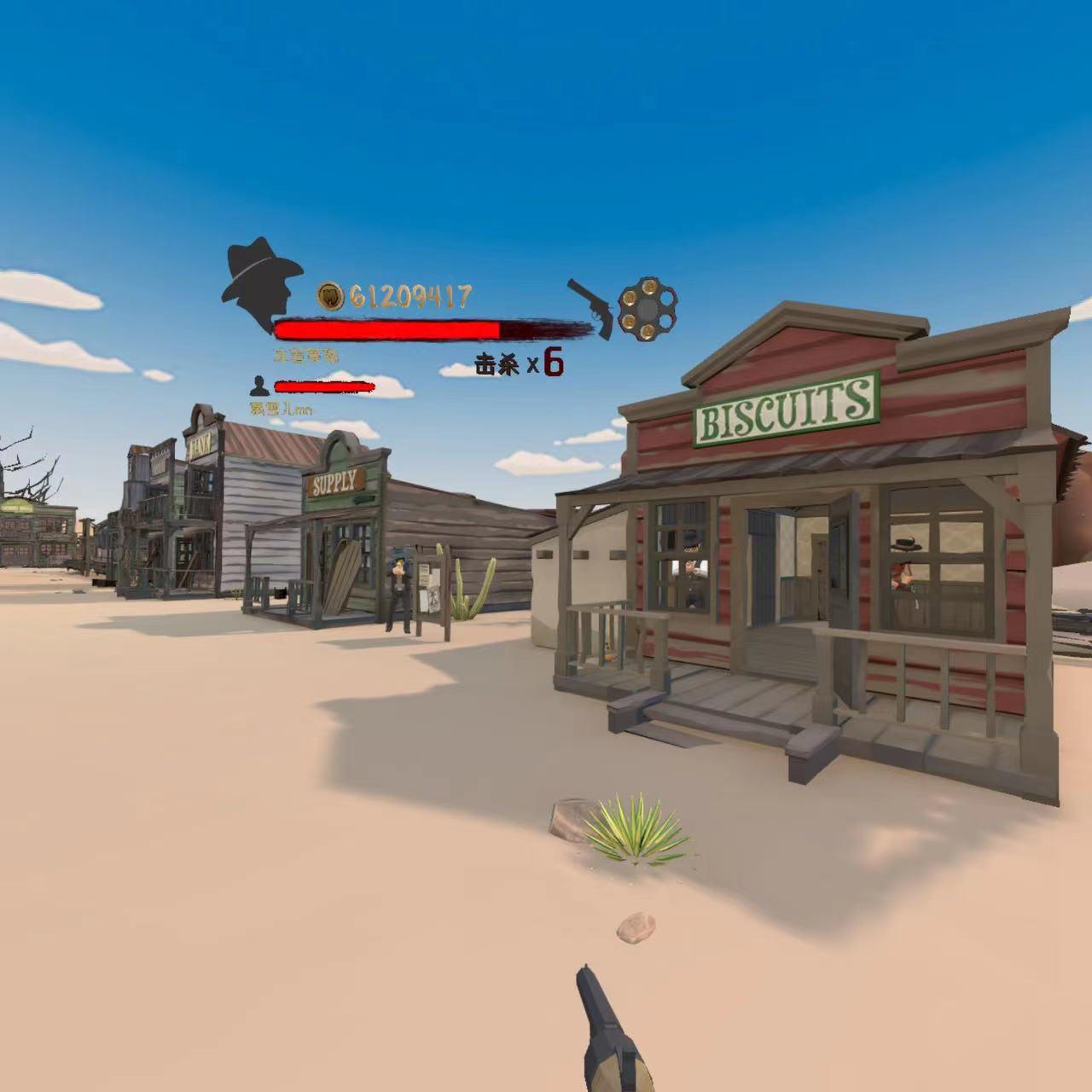 这是一款1-2人射击游戏,利用手里的左轮手枪击败所有敌人和最后BOSS来通关。
