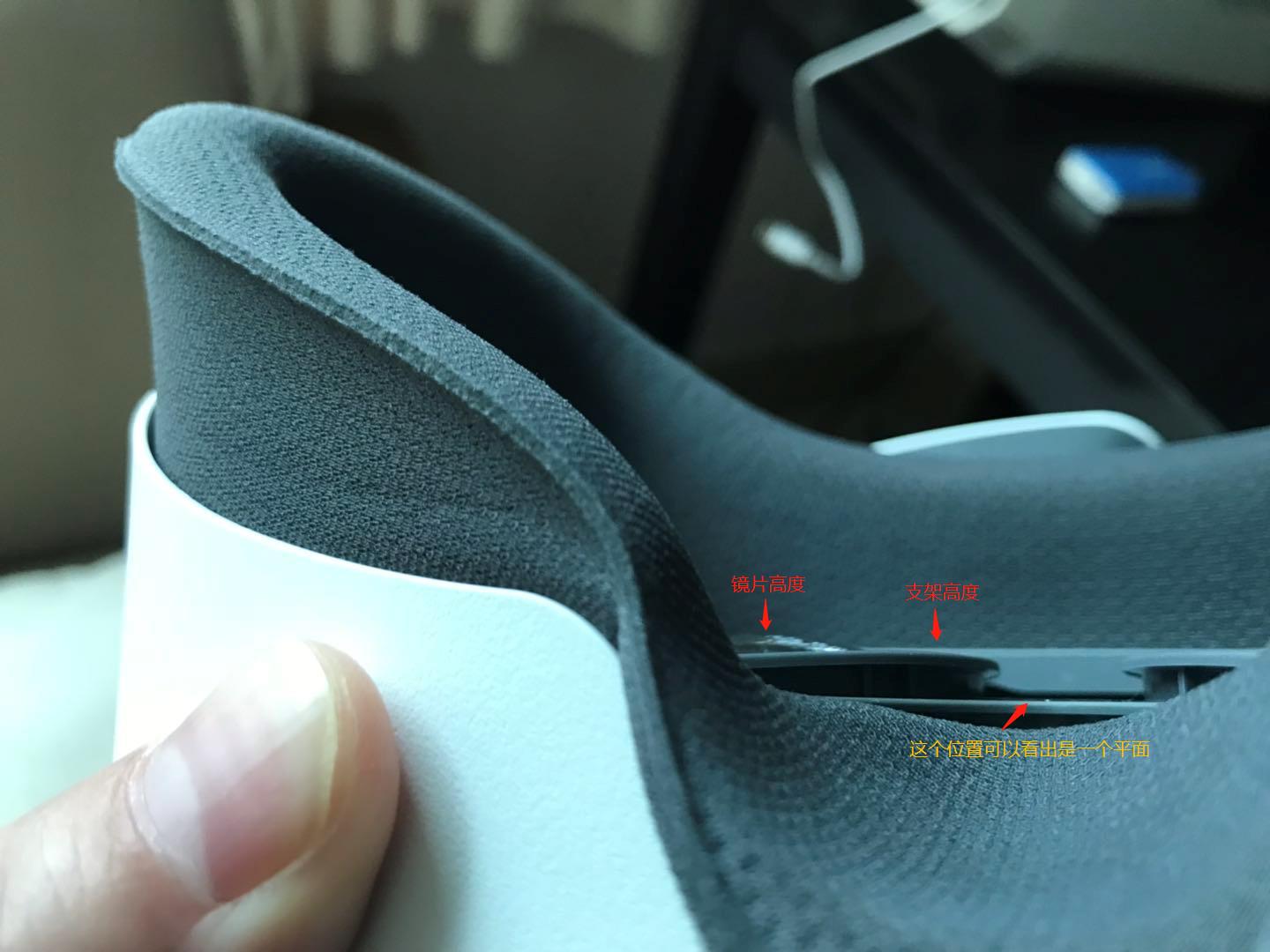 最近到淘宝官网买了个G2的眼镜支架,以为能根治眼镜磨镜片的问题,收到货后发现,支架完全没有卵用,售后还说收到很多客户的好评,真会吹。 镜片比较支架还凸出 镜片比较支架还凸出 眼镜放上去,和支架一点接触都没有,直接磨镜片上。 安装支架后的情况 售后很无奈的叫我带隐去眼镜可能放松绑带,不要太紧。问题是如果要这样做,PICO你出个眼镜支架的意义是什么呢?