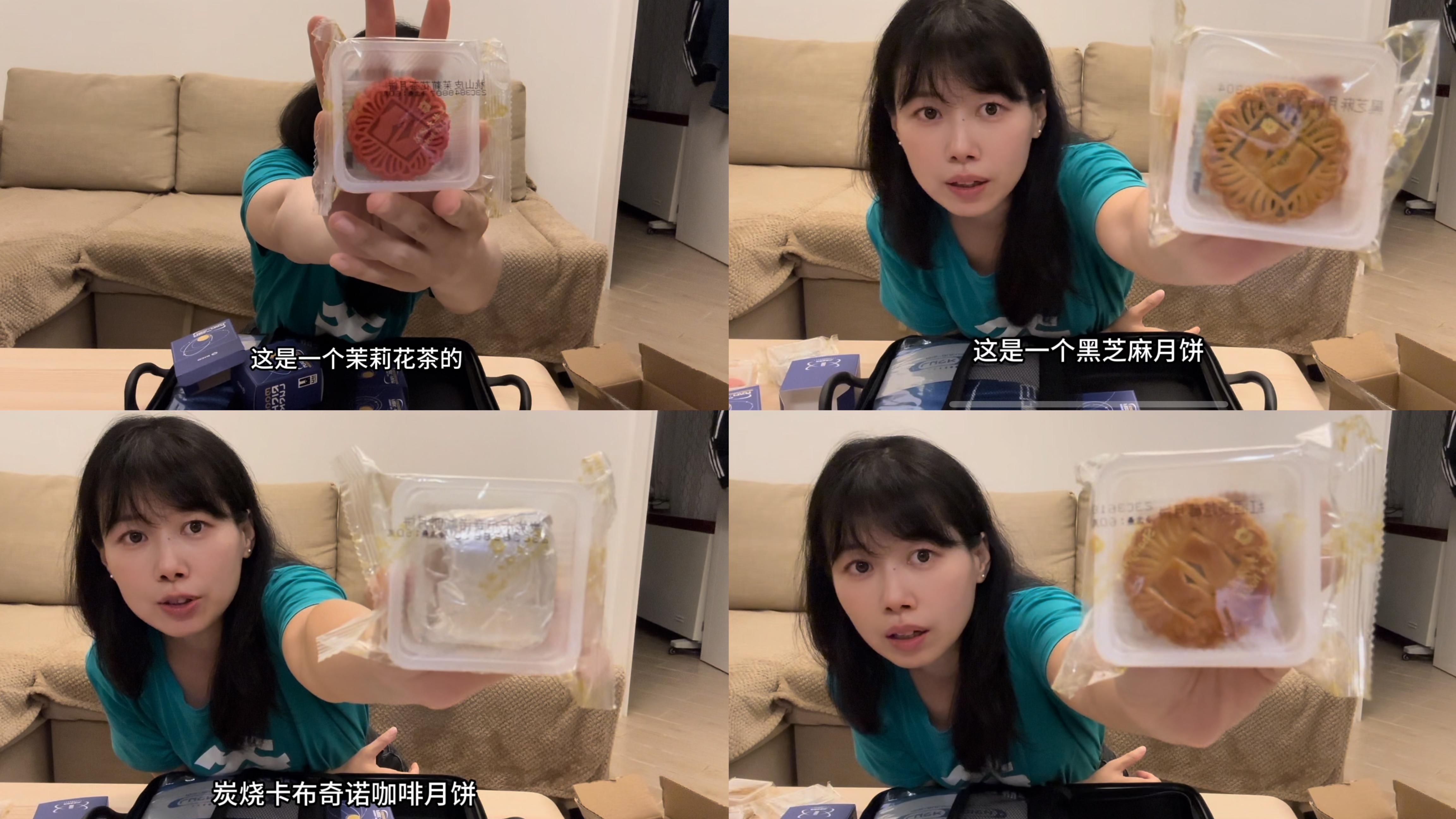 - 四种口味的月饼(茉莉花茶、黑芝麻、炭烧卡布奇诺咖啡、红酒蔓越莓)。
