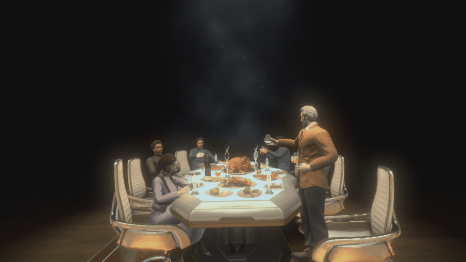 游戏的场景的选择不用局限于传统空间,在《穿越星尘》中,故事的发生地就在太空飞船上。