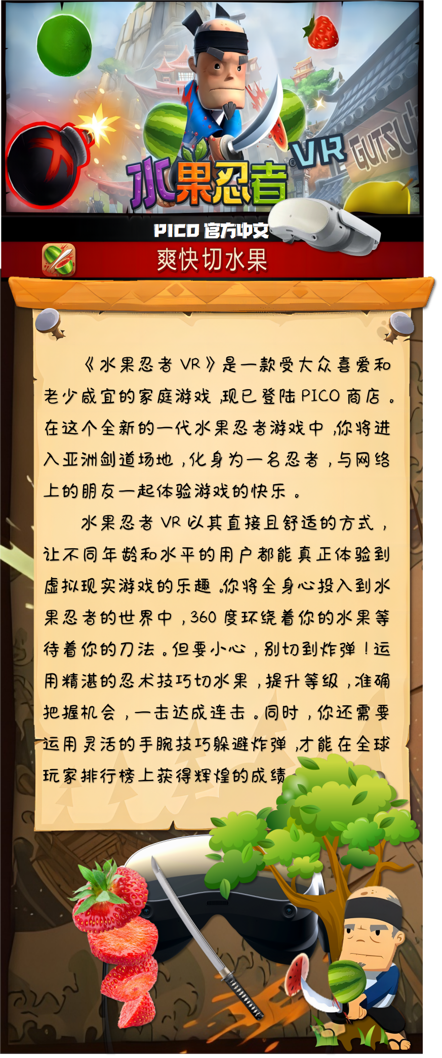 在这个游戏里无论你是新手还是高手,都能在这个VR游戏中找到属于自己的乐趣。新作加入多人模式让你在成为忍者的道路上不再孤单,多种游戏中隐藏的小游戏及多种的新式武器,让你在这款游戏中体验与以往不同的乐趣,游戏中最新制作的亚洲场景,能让我们有走在不同的游戏空间,通过NPC购买的新式武器你还没试过吧!