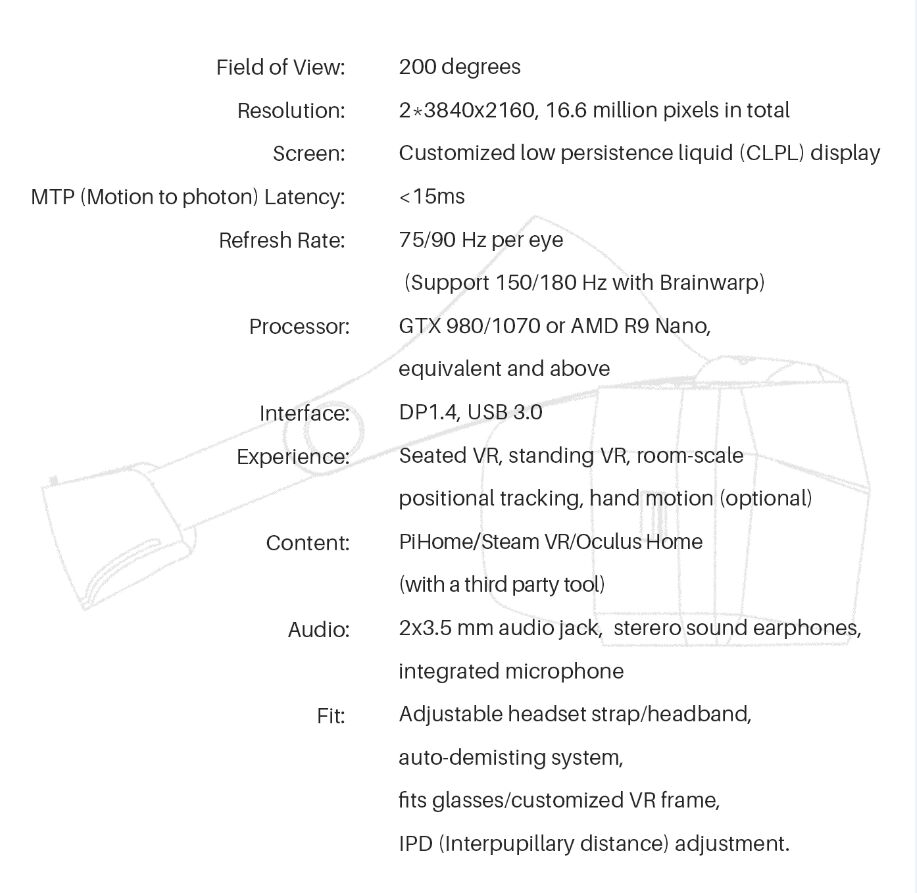 近期在德国IFA引起国内外媒体轰动的小PAI8KVR,已被官方证实会在9月份美国Kicksteat平台开始众筹,据媒体测评介绍,小PAI8KVR的分辨率达到了恐怖的8K(单眼4K)的程度,视场角更是直接提升到了200度,分辨率是目前主流3大头显得4倍 视场角是目前VR设备的2倍,接近人眼的220度。
