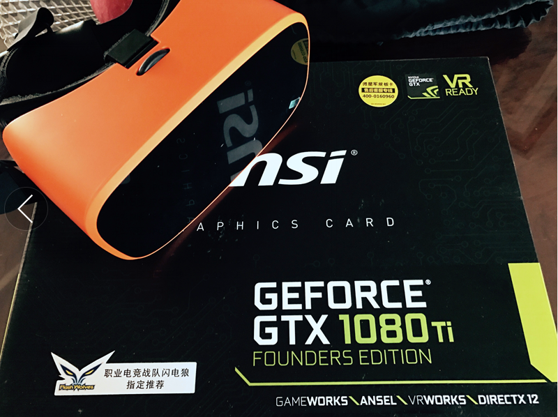 有幸本次在某东首发GTX 1080Ti时抢到一块,虽说没能抢到华硕的,不过能拿到微星的也还是不错,毕竟都是大厂,而且首发也避免了做“接盘侠”的风险,本次开箱主要会说一下msi GTX 1080 Ti FOUNDERS EDITION 公版显卡的外观、性能、参数,然后会跟大家分享一下在VR游戏方面的实际效果,好了,言归正传,我们抓紧开始。