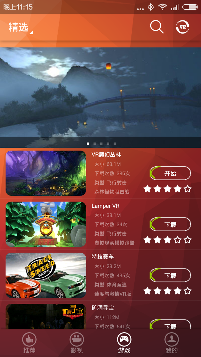 3、点开右上角的vr,或者选择你希望浏览的视频或游戏