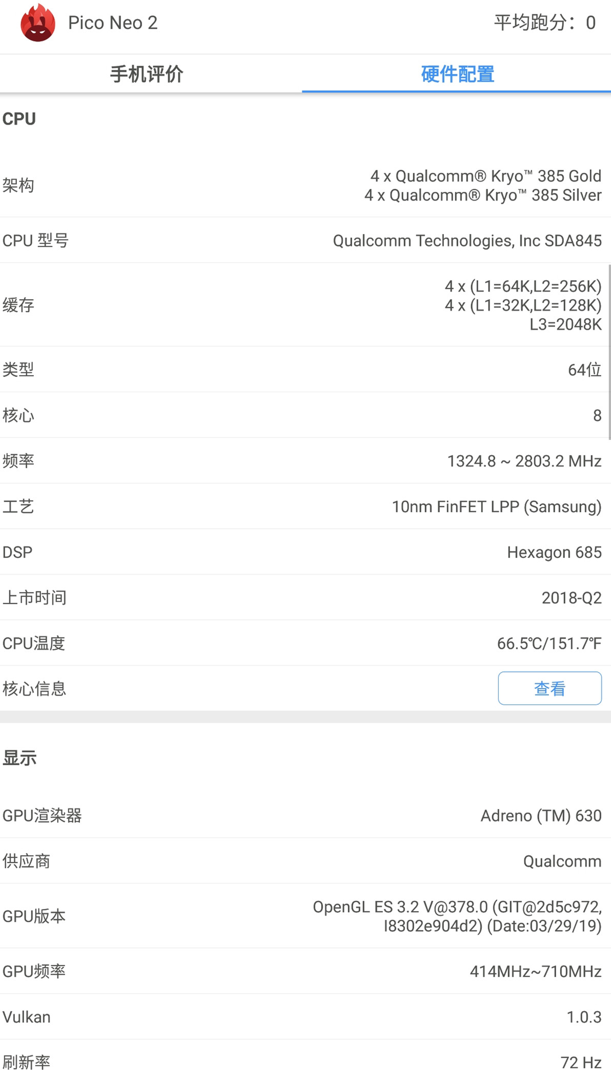 这个分数就只是参考了。23W和之前我看到的三星S9差不多,但是这个一体机是在运行其他程序的时候跑的,所以受到一些限制,安兔兔也没有针对VR一体机的优化。