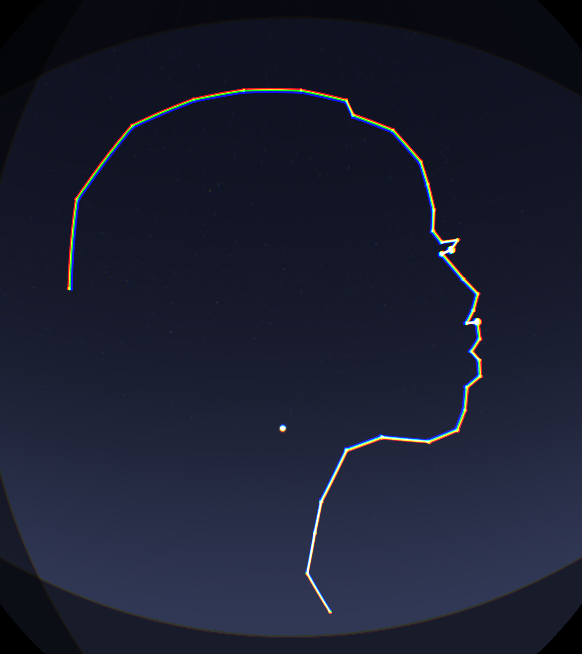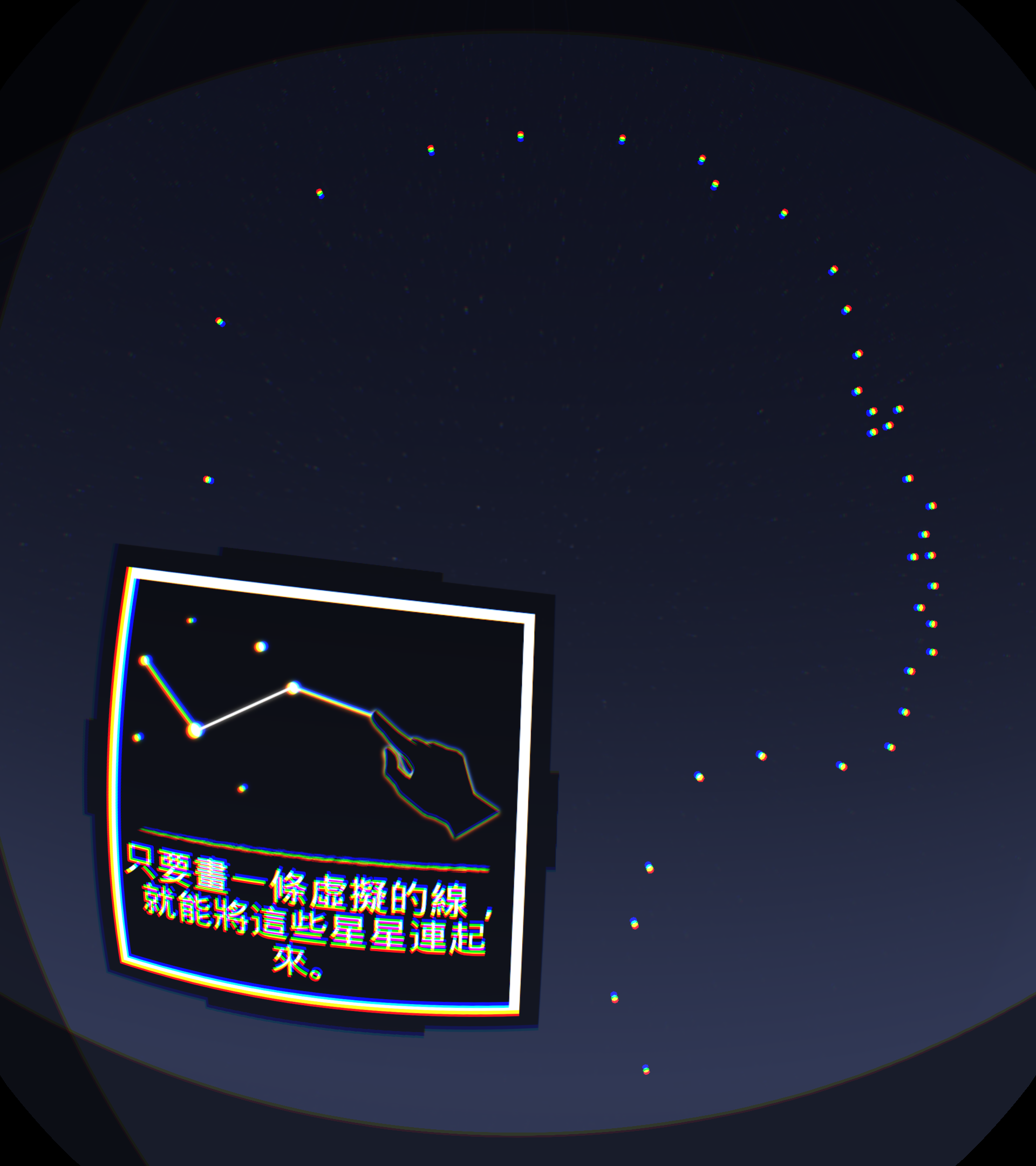 第一幕,开始仰望星空,星空演变为一个新的星座,用手连线形成母亲抱着孩子的图案,也许一个伟大母亲的爱能保佑