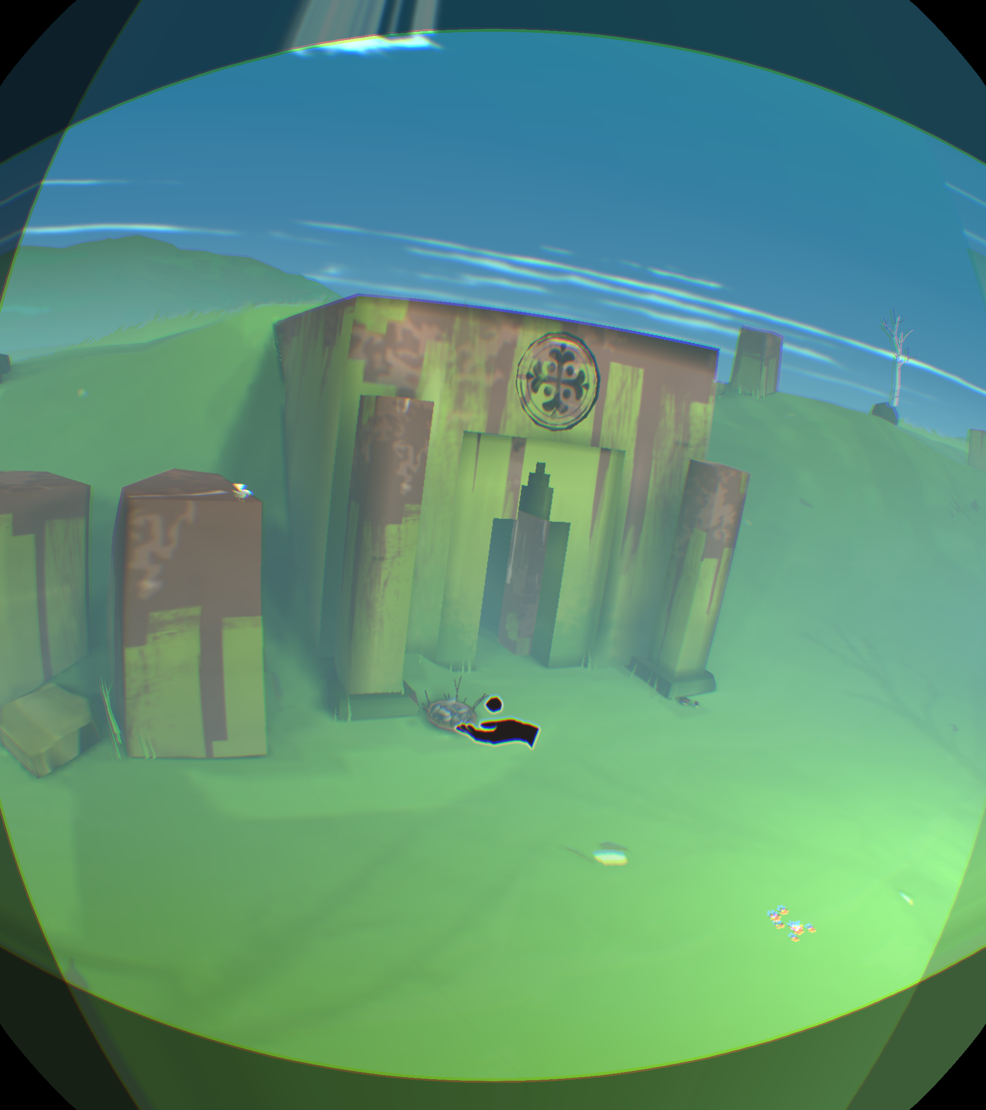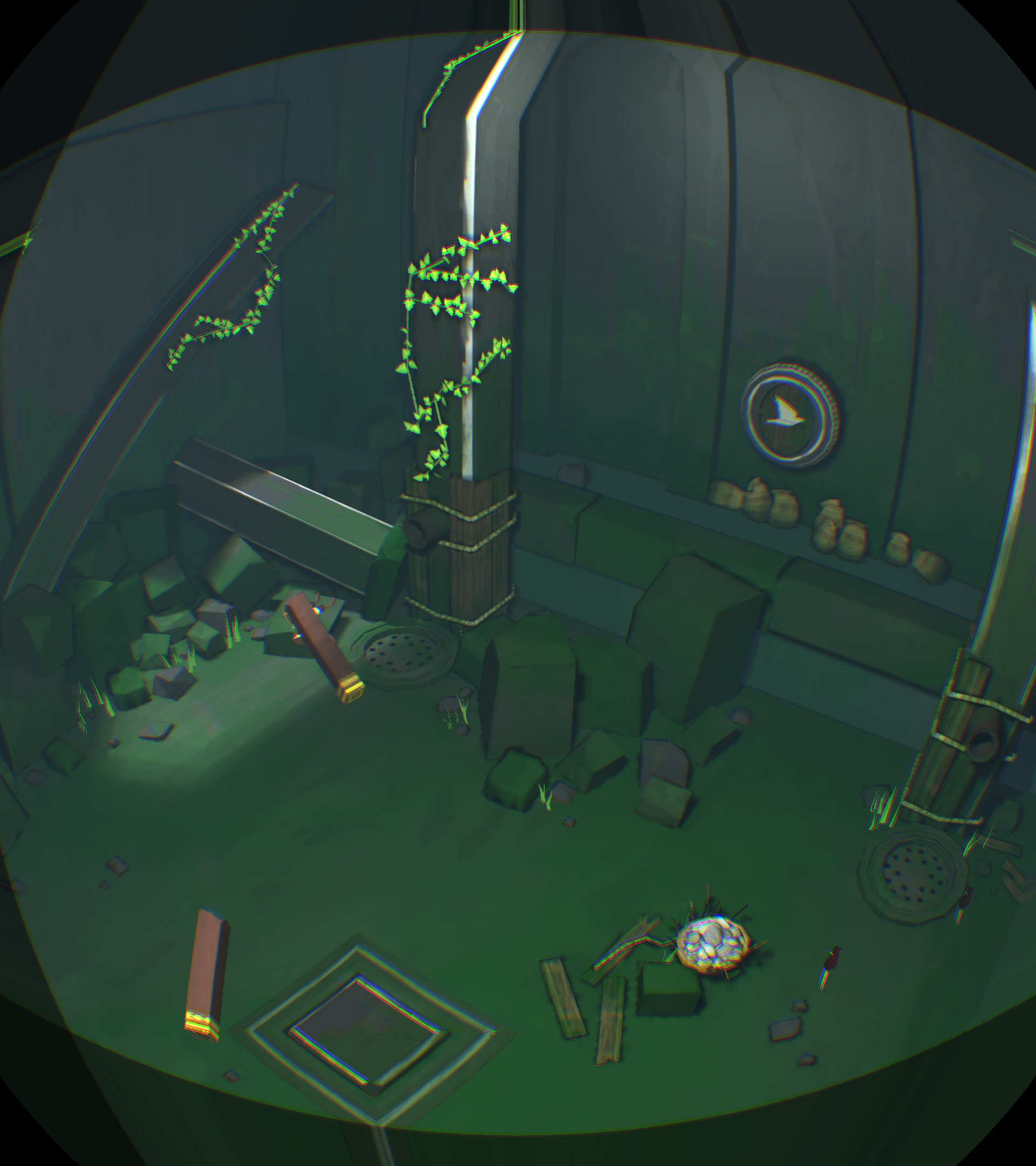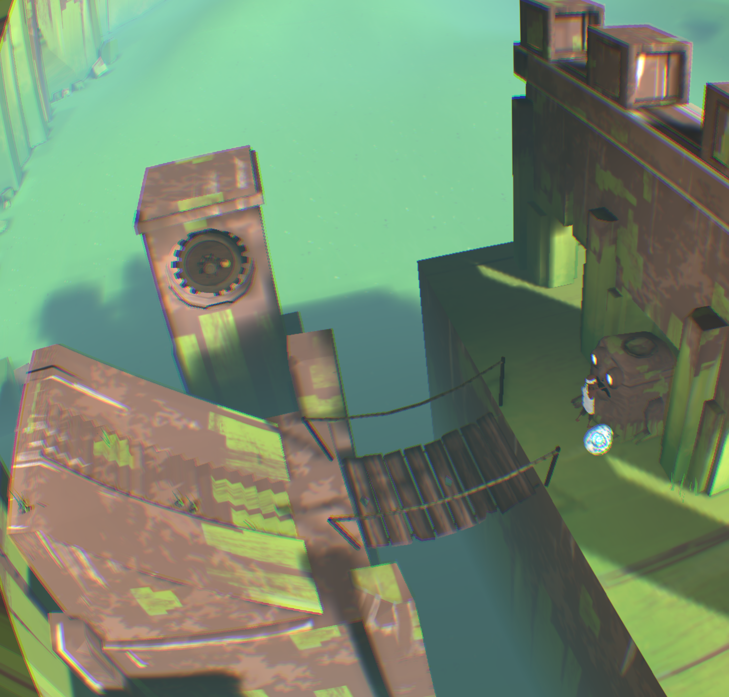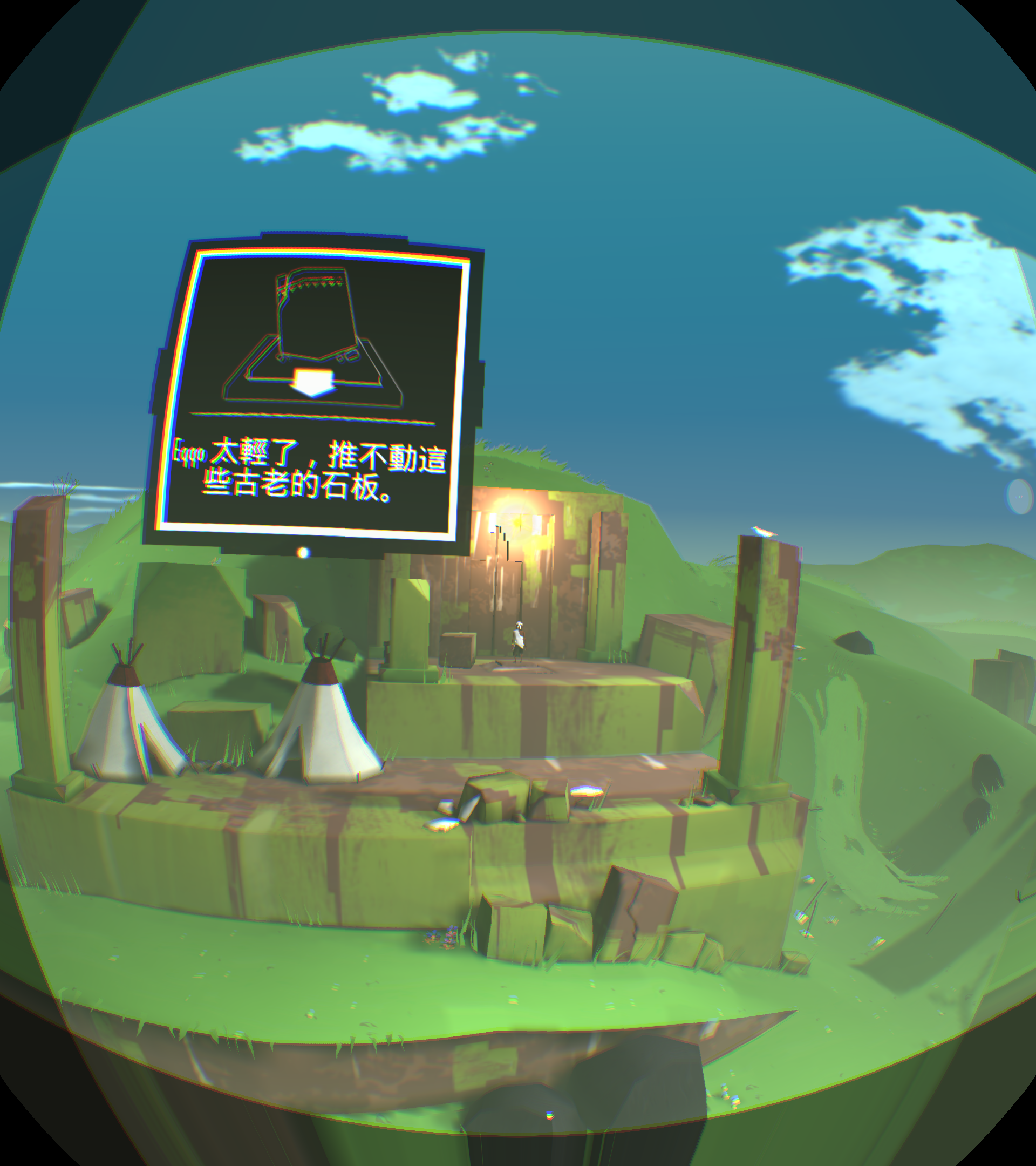 [backcolor=rgb(255, 255, 255)]      第二幕,进到这里有点郁闷,只看见神卵从小河里飘走,你却无能为力,抓不到!而且还看不到小Eqqo,难道母神的爱没有拯救她,他可是得到神眷恋的孩子啊!你收拾心情,开始干活,把一根木柱拉倒方形踏板上,发现露出了拉杆机关,你试着搬动机关,发现右边的污水龙头上流出了水,可是这有什么用呢?你正在百无聊赖的时候,觉得另外一根标记的柱子应该有玄机!你拉开了柱子,等等!!你发现了什么!我的VR眼睛上脏了,不对!是小Eqqo,他被柱子压在最下面,所以没看到。你去拉他,可是摸不到他,怎么办?你发现他正好跌落在左侧的下水井井盖上,上面也有龙头。真是关心则乱,你赶紧用石头打那个鸟形白色翻版,结果水路转换了,水流打在小Eqqo身上,他醒了,太好了,小Eqqo还活着,真是太好了,你的亲人还活着,在这个世界里,只有你两不离不弃,不是吗?你仔细看看他,他竟然没事,可以行动自如,水路没法走,你指引小Eqqo进入栅栏过关。