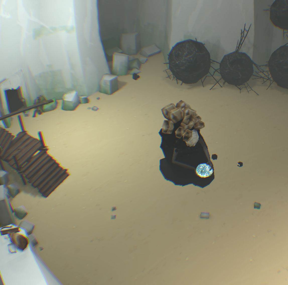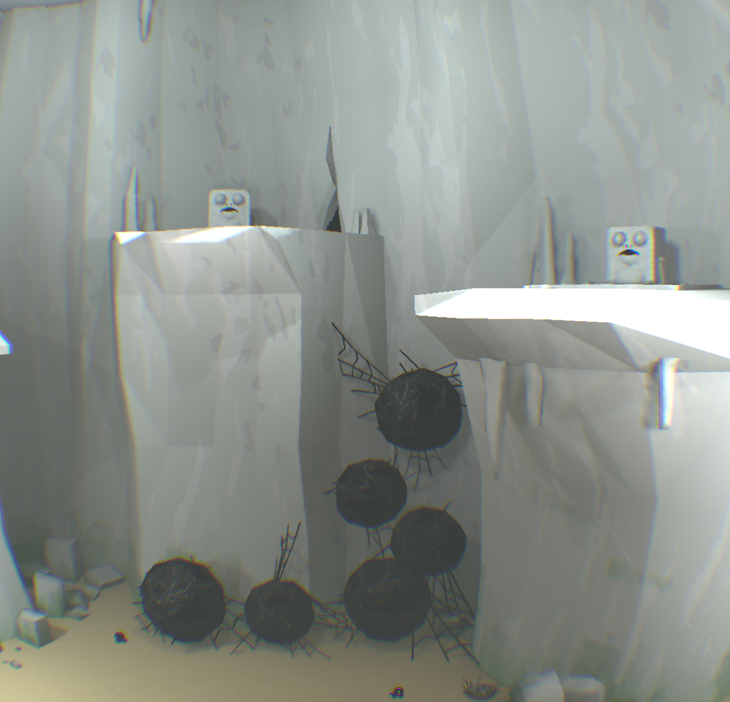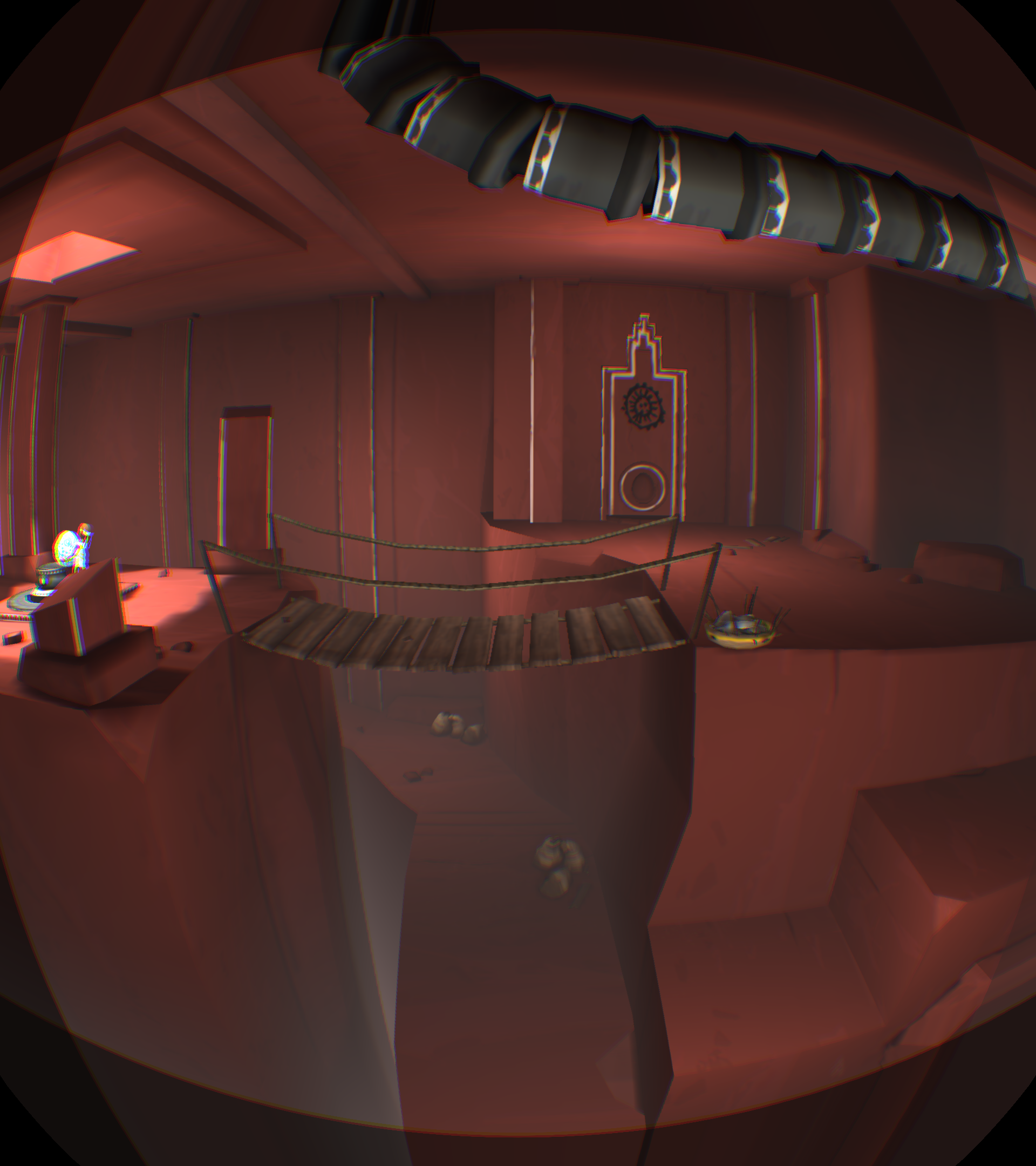 [backcolor=rgb(255, 255, 255)]      第二幕,进到这里有点郁闷,只看见神卵从小河里飘走,你却无能为力,抓不到!而且还看不到小Eqqo,难道母神的爱没有拯救她,他可是得到神眷恋的孩子啊!你收拾心情,开始干活,把一根木柱拉倒方形踏板上,发现露出了拉杆机关,你试着搬动机关,发现右边的污水龙头上流出了水,可是这有什么用呢?你正在百无聊赖的时候,觉得另外一根标记的柱子应该有玄机!你拉开了柱子,等等!!你发现了什么!我的VR眼睛上脏了,不对!是小Eqqo,他被柱子压在最下面,所以没看到。你去拉他,可是摸不到他,怎么办?你发现他正好跌落在左侧的下水井井盖上,上面也有龙头。真是关心则乱,你赶紧用石头打那个鸟形白色翻版,结果水路转换了,水流打在小Eqqo身上,他醒了,太好了,小Eqqo还活着,真是太好了,你的亲人还活着,在这个世界里,只有你两不离不弃,不是吗?你仔细看看他,他竟然没事,可以行动自如,水路没法走,你指引小Eqqo进入栅栏过关。