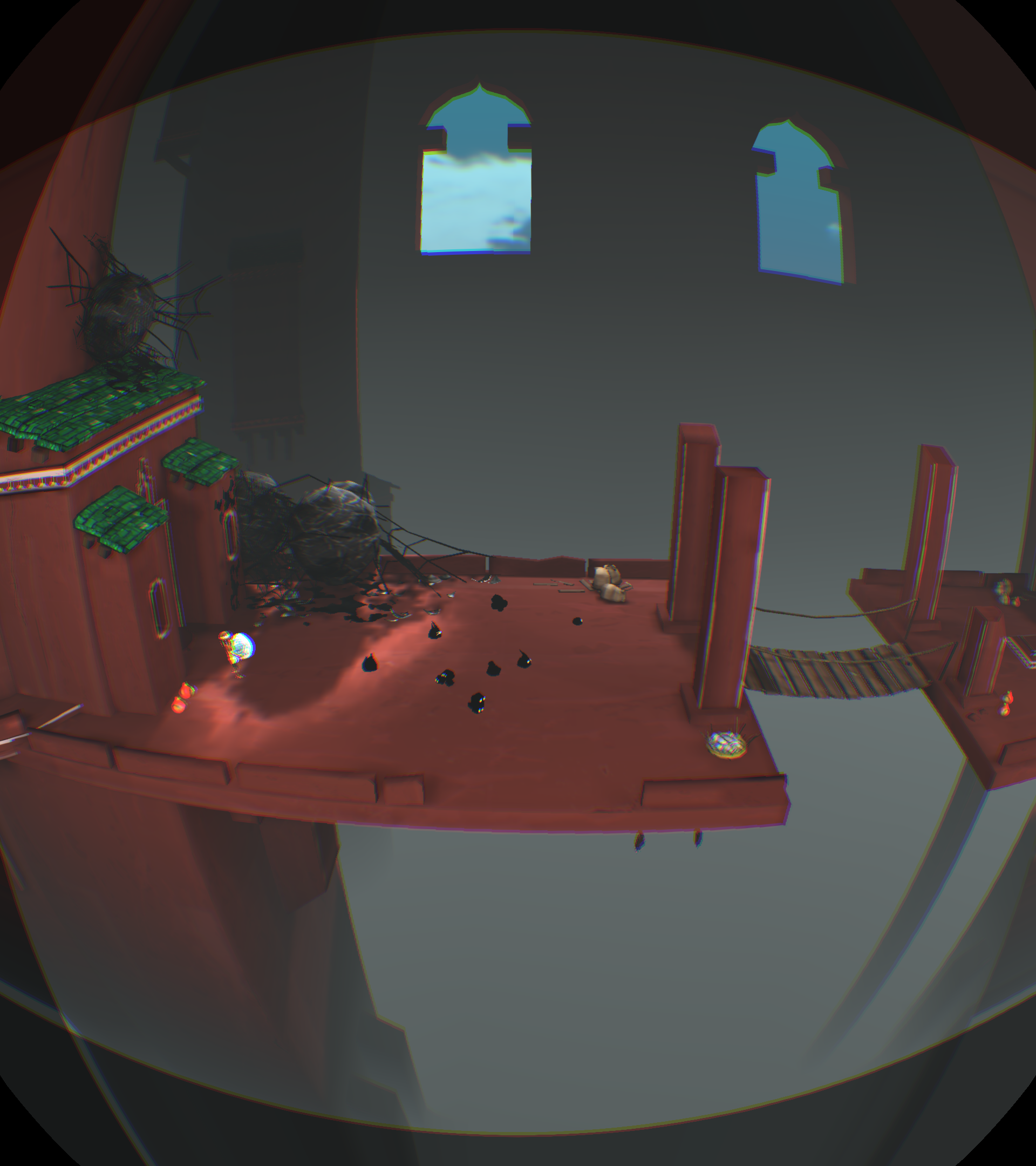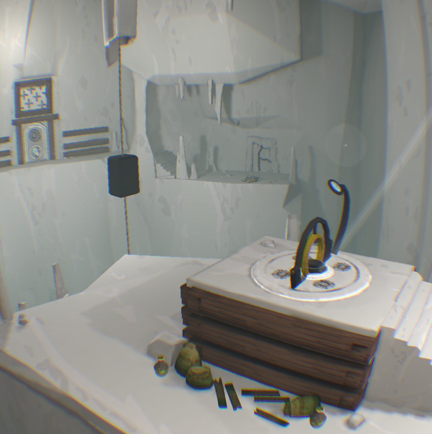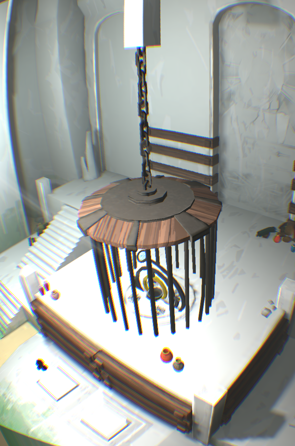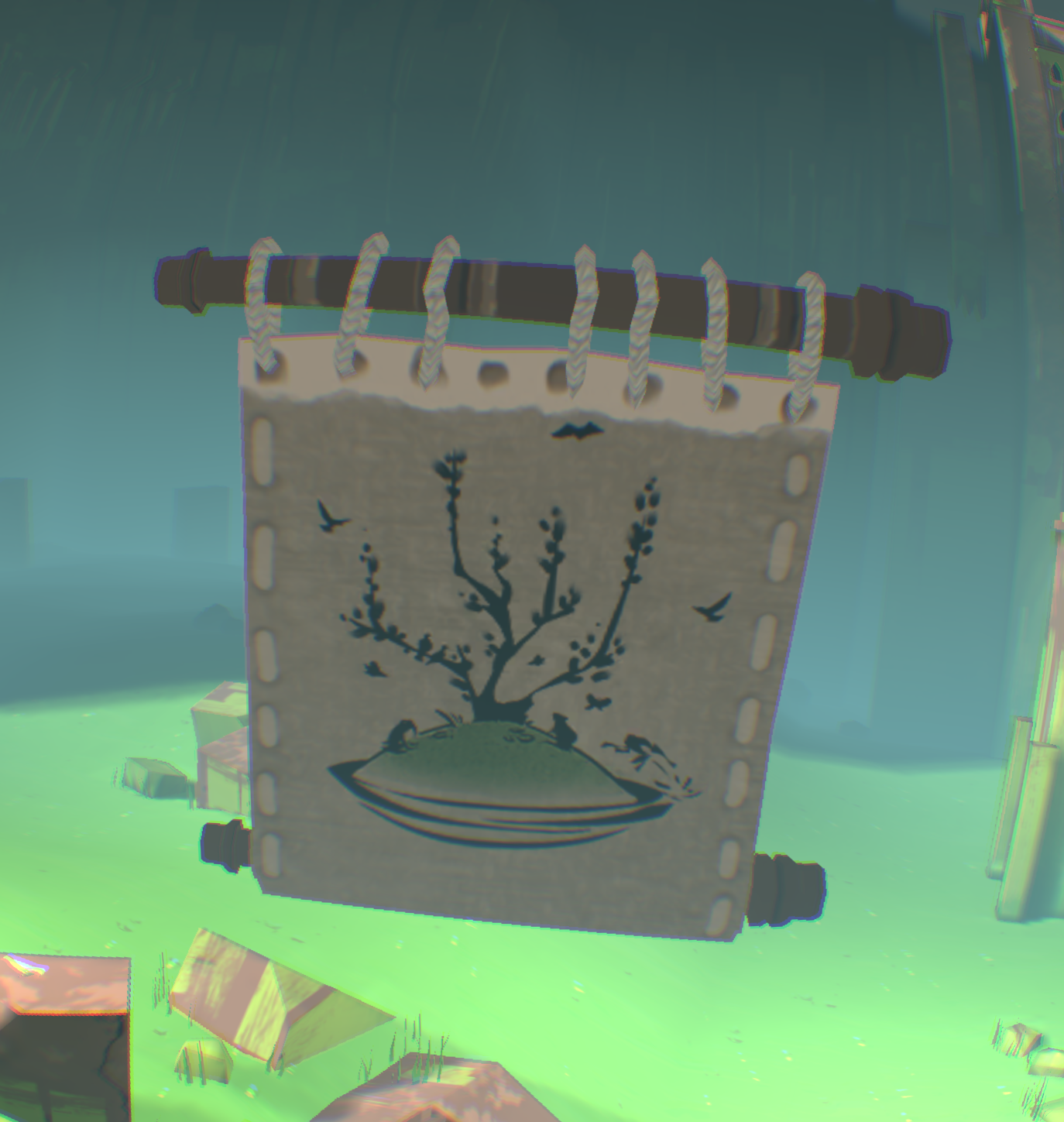 [backcolor=rgb(255, 255, 255)]      第二幕,进到这里有点郁闷,只看见神卵从小河里飘走,你却无能为力,抓不到!而且还看不到小Eqqo,难道母神的爱没有拯救她,他可是得到神眷恋的孩子啊!你收拾心情,开始干活,把一根木柱拉倒方形踏板上,发现露出了拉杆机关,你试着搬动机关,发现右边的污水龙头上流出了水,可是这有什么用呢?你正在百无聊赖的时候,觉得另外一根标记的柱子应该有玄机!你拉开了柱子,等等!!你发现了什么!我的VR眼睛上脏了,不对!是小Eqqo,他被柱子压在最下面,所以没看到。你去拉他,可是摸不到他,怎么办?你发现他正好跌落在左侧的下水井井盖上,上面也有龙头。真是关心则乱,你赶紧用石头打那个鸟形白色翻版,结果水路转换了,水流打在小Eqqo身上,他醒了,太好了,小Eqqo还活着,真是太好了,你的亲人还活着,在这个世界里,只有你两不离不弃,不是吗?你仔细看看他,他竟然没事,可以行动自如,水路没法走,你指引小Eqqo进入栅栏过关。