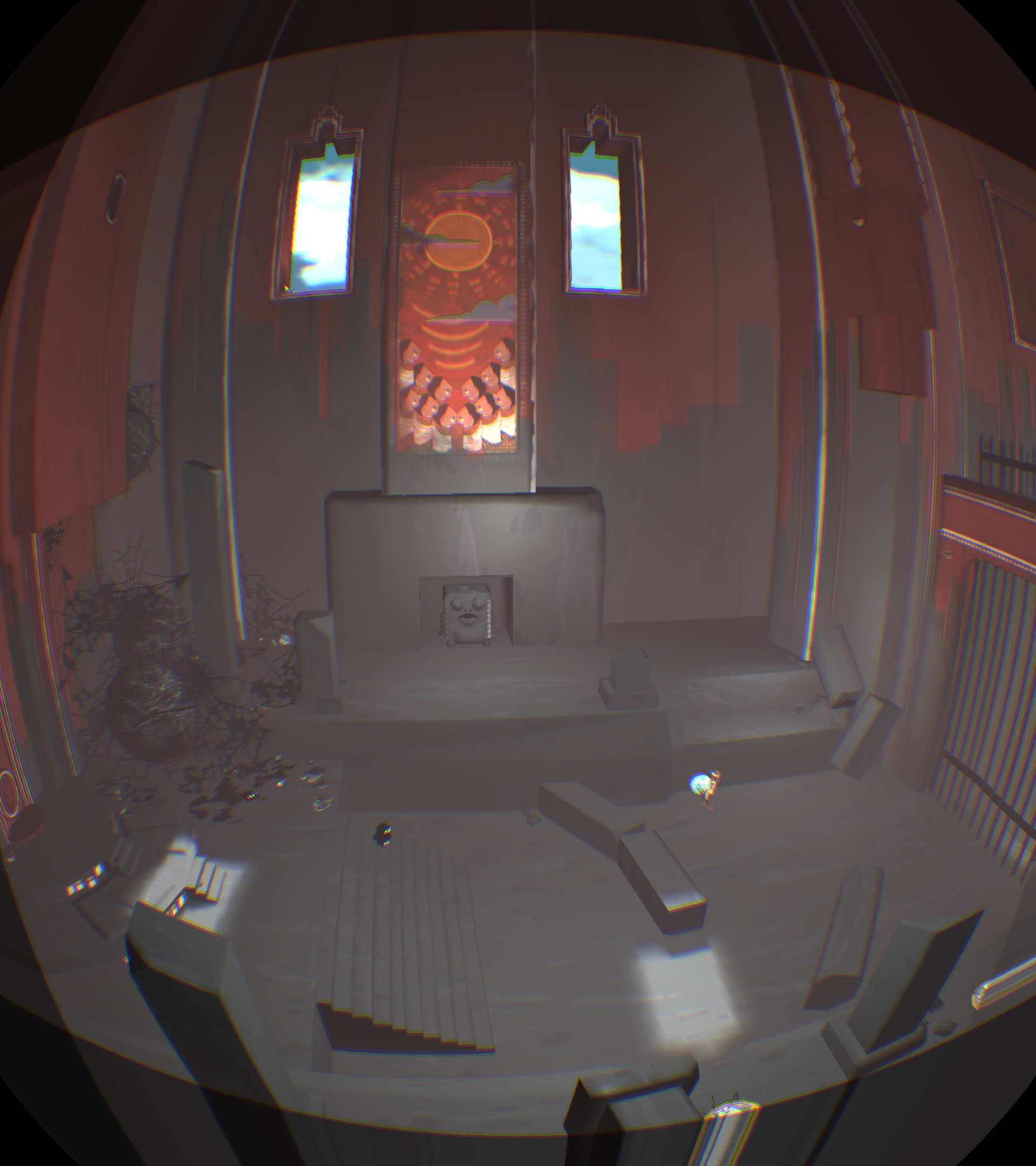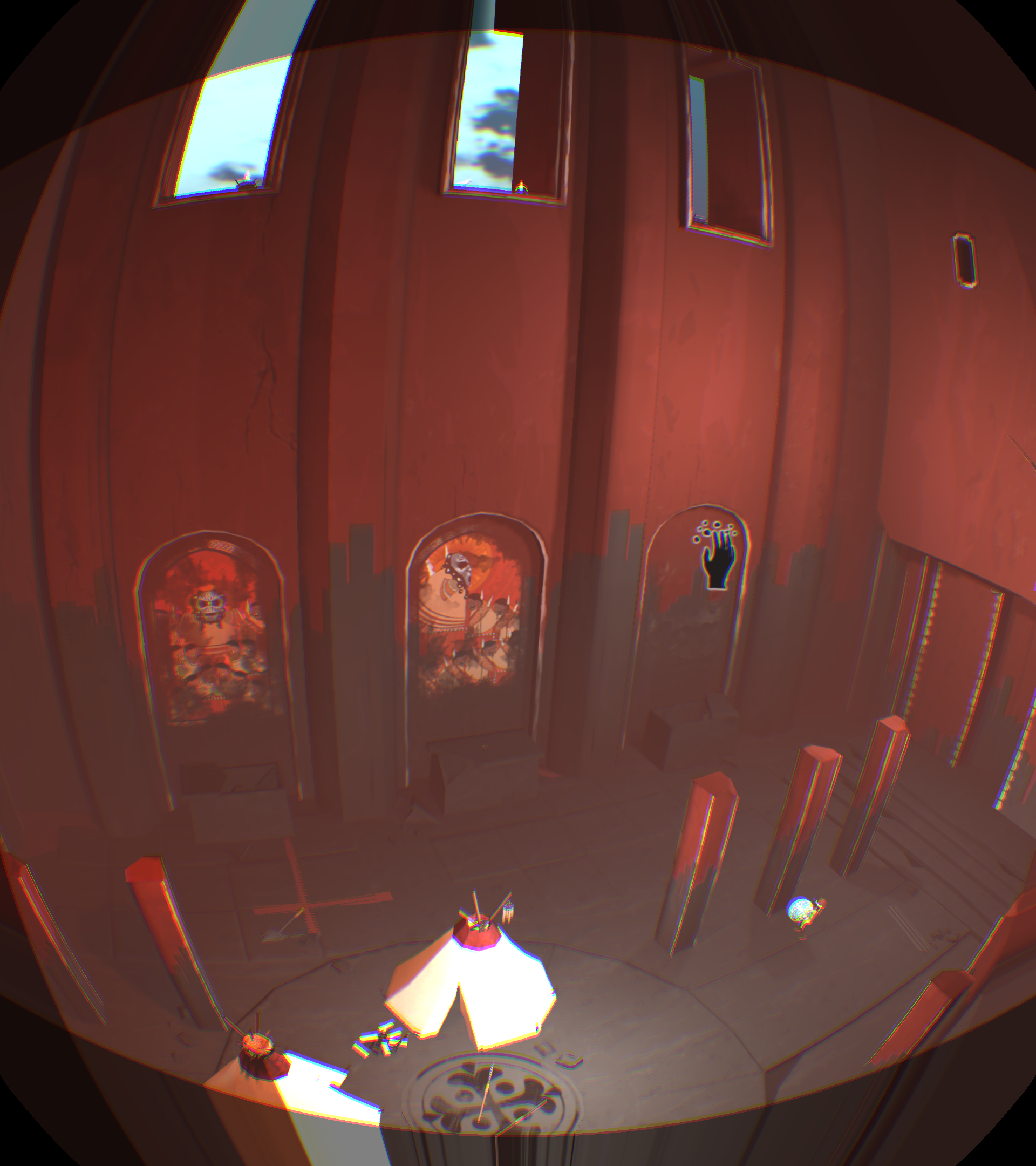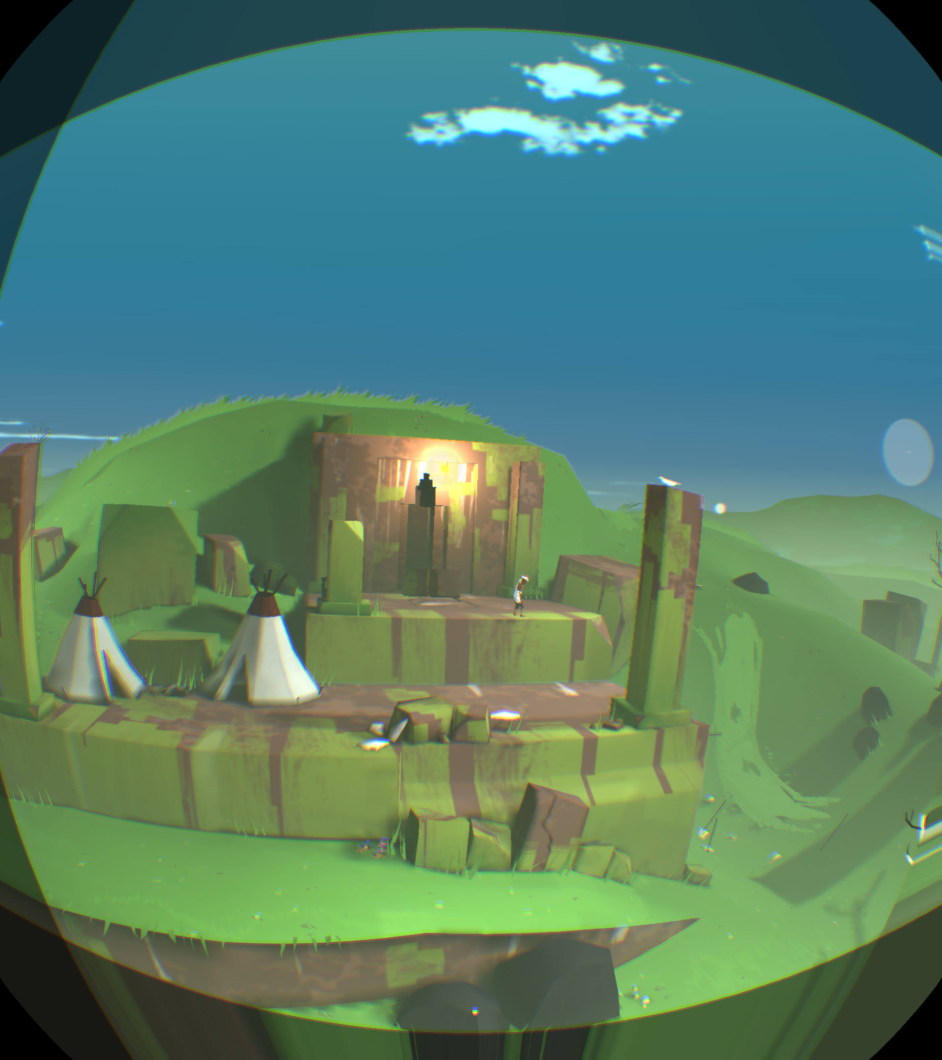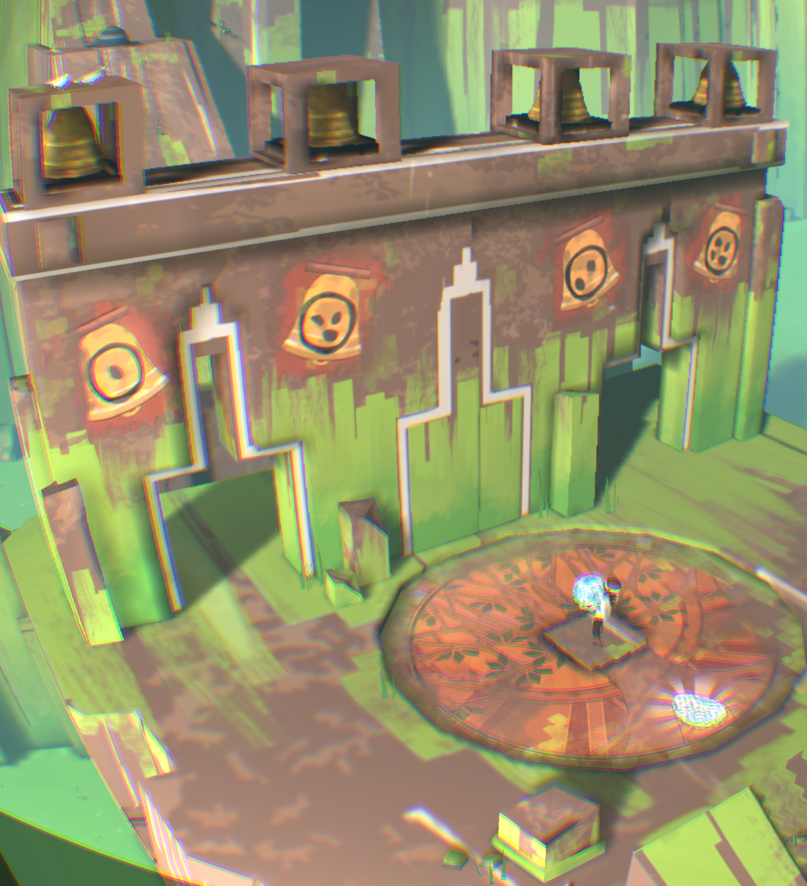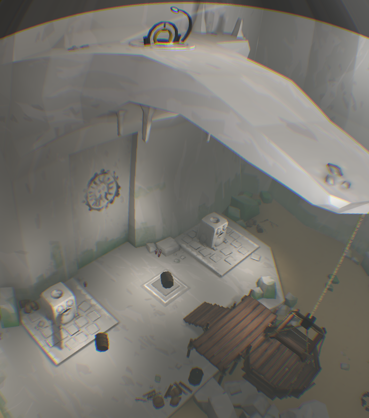 [backcolor=rgb(255, 255, 255)]      第一幕,从名字看好像是最后一章了,好像有点舍不得!你先清理墙面,露出和上一关类似的具有靶子的壁画,你试着用石头打对面那个有裂纹的洞口,竟然打开了,是你的力量有所恢复吗?引导小Eqqo进入石门从悬崖下的另一端走出来,你可以切换视角瞬移过去看到他,在悬崖下找到另外一个洞口,仍然有石头砸开,好了进入来到悬崖上。先引导小Eqqo把神卵放在光感祭坛上,再触摸雕像开启光线,你移动光线照射靶心,这时悬崖下机关门打开,抱上神卵,过关!
