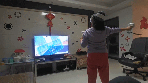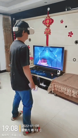 电视投屏,首先说投屏对我来说为什么重要,因为小孩经常一堆到家里玩,那么VR游戏肯定是轮流一人一局这样来的,一个小朋友在玩的时候,其他的小朋友干嘛呢?如果不投屏出来,大家没有互动也不知道哪里玩的对哪里玩砸了,头衔只能自嗨,声音也小,那么投屏出来以后呢?大家都能嗨,而且电视的影响低音炮一开起来,整一个舞厅模式,两个字,劲爆。但是之前的版本存在一定的卡顿,因为这个事我还加上了客服Pico-Shay,很不错的一个人,挺有耐性,目前新的测试包据说已经解决了卡顿的问题,据说新版本的正式升级包推送会在这个月底左右,因为第一台收到的机器有些问题所以我机缘巧合之下试过两个版本的差别(新买的机器版本是在4.4.7之前的)。