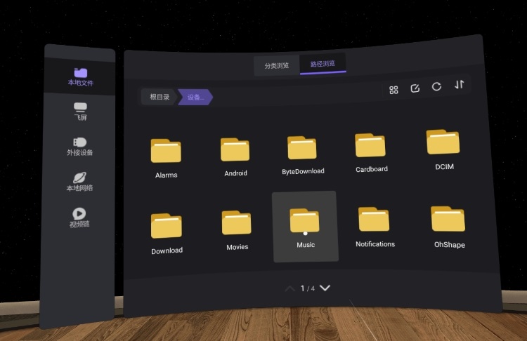 VR一体机也可以观看局域网上共享的视频,可以通过飞屏助手、Windows文件共享、SMB等方式共享视频文件,预算充足的同学甚至会用到NAS!对于新手同学推荐最简单傻瓜的方式就是通过Pico飞屏助手了,只要在电脑上把视频文件添加进去,然后在一体机的文件管理中打开飞屏就能看到了。