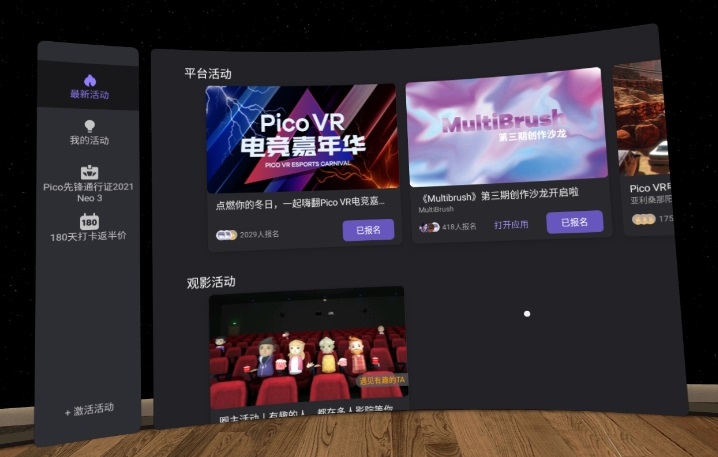 VR一体机最重要的功能之一当然是观影了。