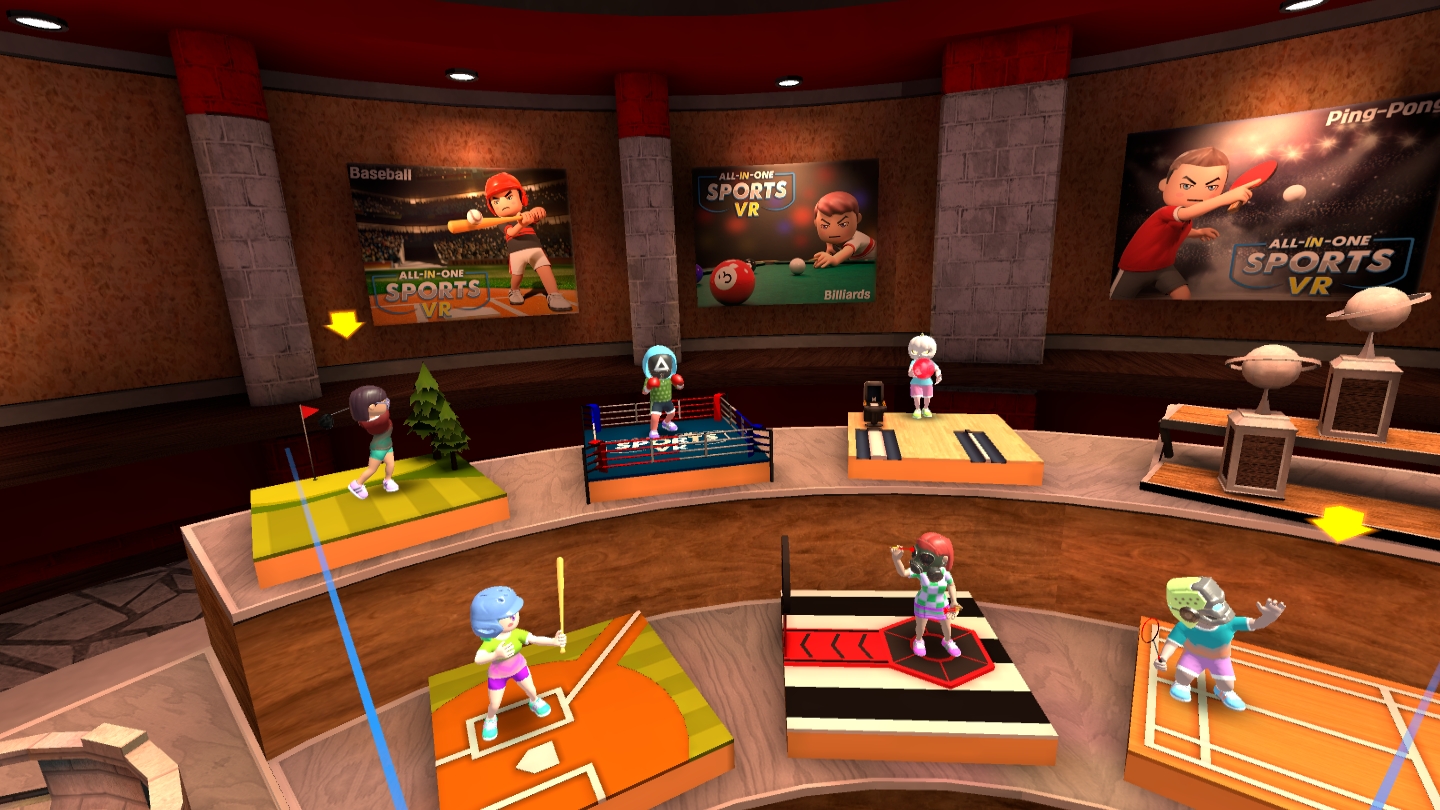 《多合一运动VR》——非常好玩的运动游戏,里面一共有十一个运动,买一个相当于买了十一款游戏,乒乓球、羽毛球、网球、篮球、高尔夫球、射击、飞镖、棒球、拳击、保龄球、桌球,每个都非常好玩,而且支持联机对战!