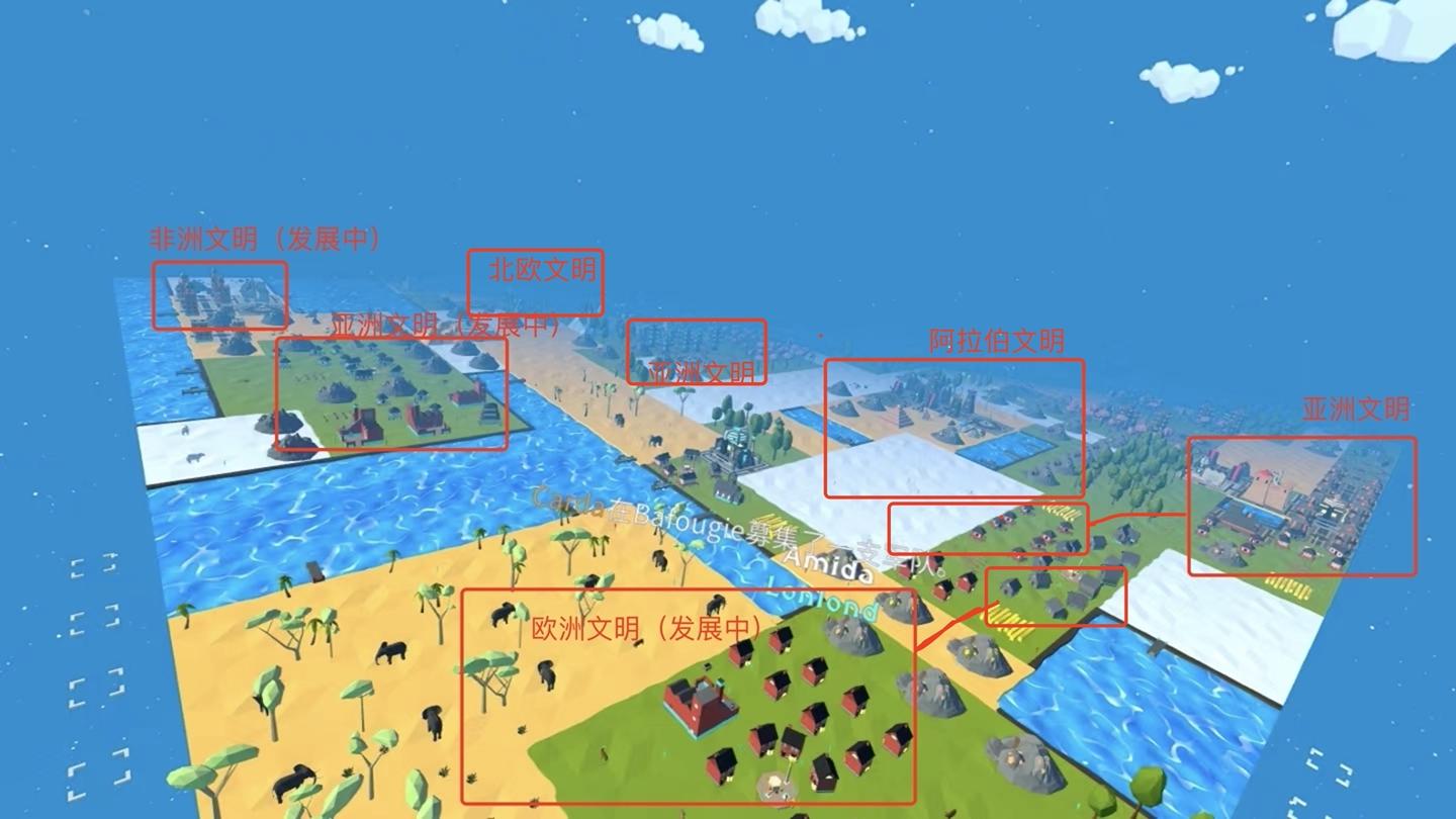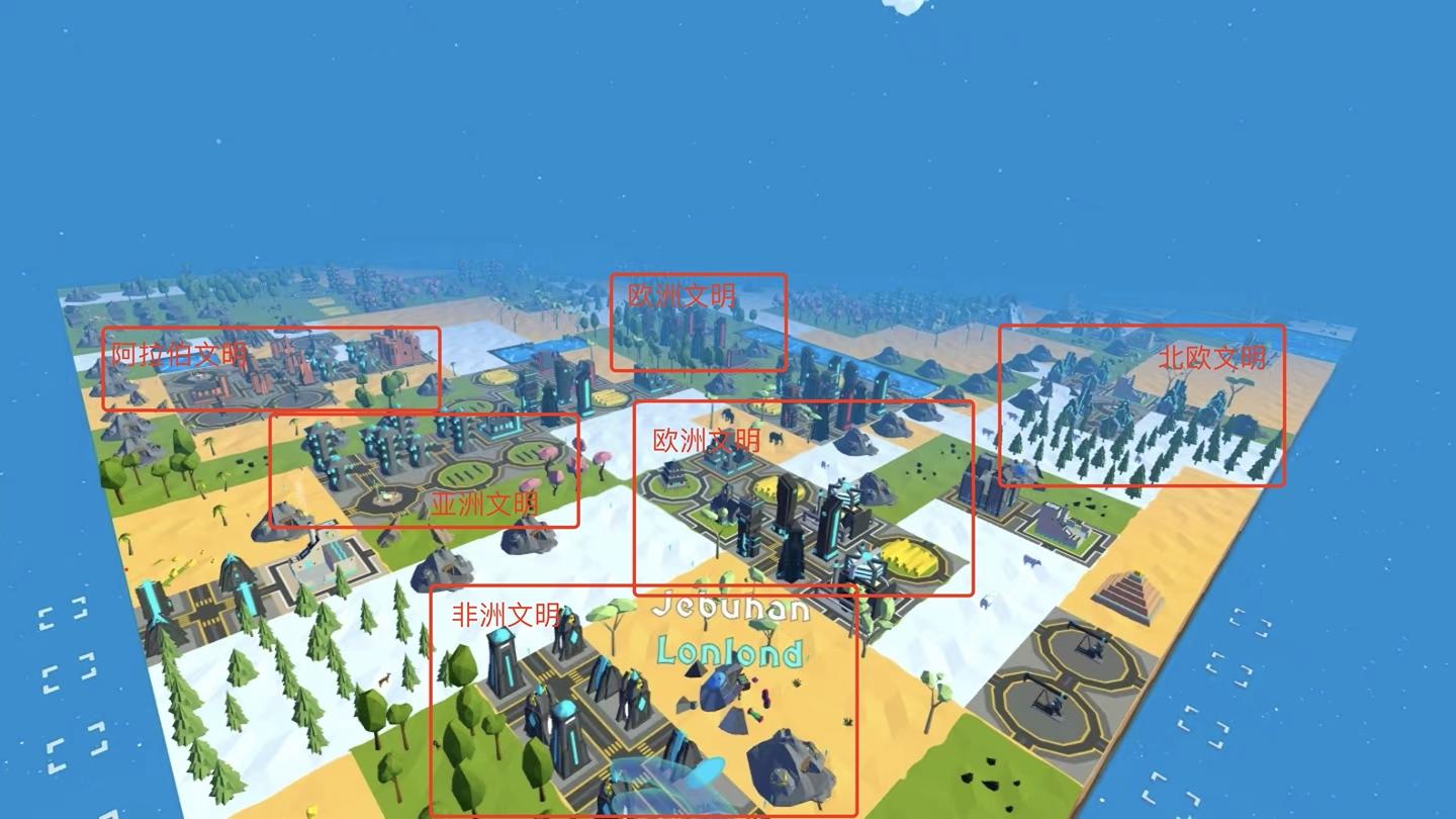 2. 每个区域提供木材,石头,动物,矿等基本物质供其文明升级;