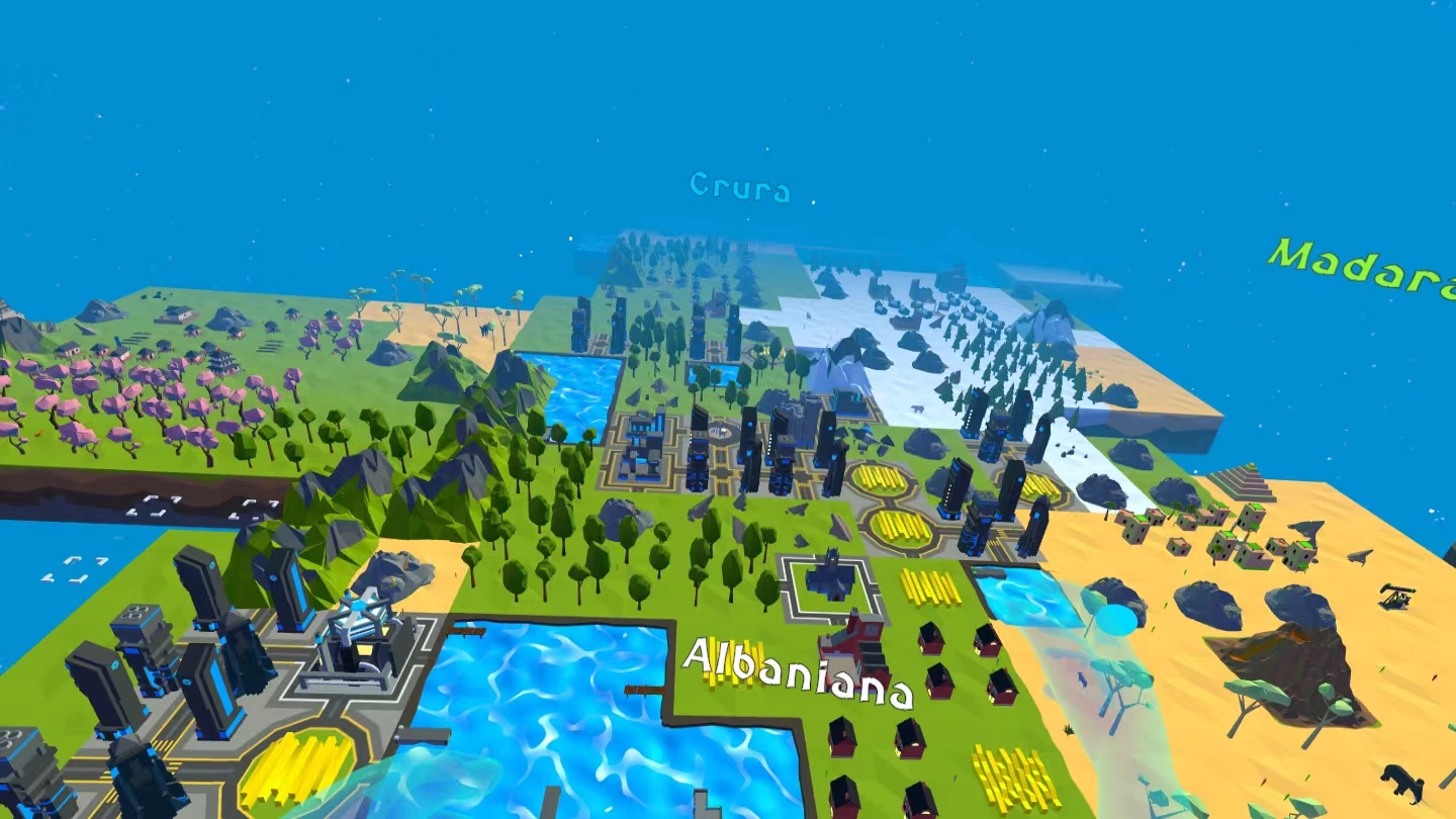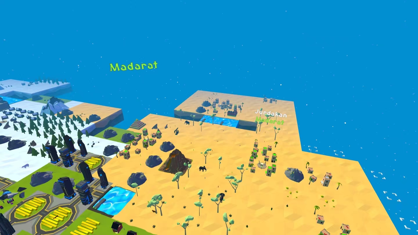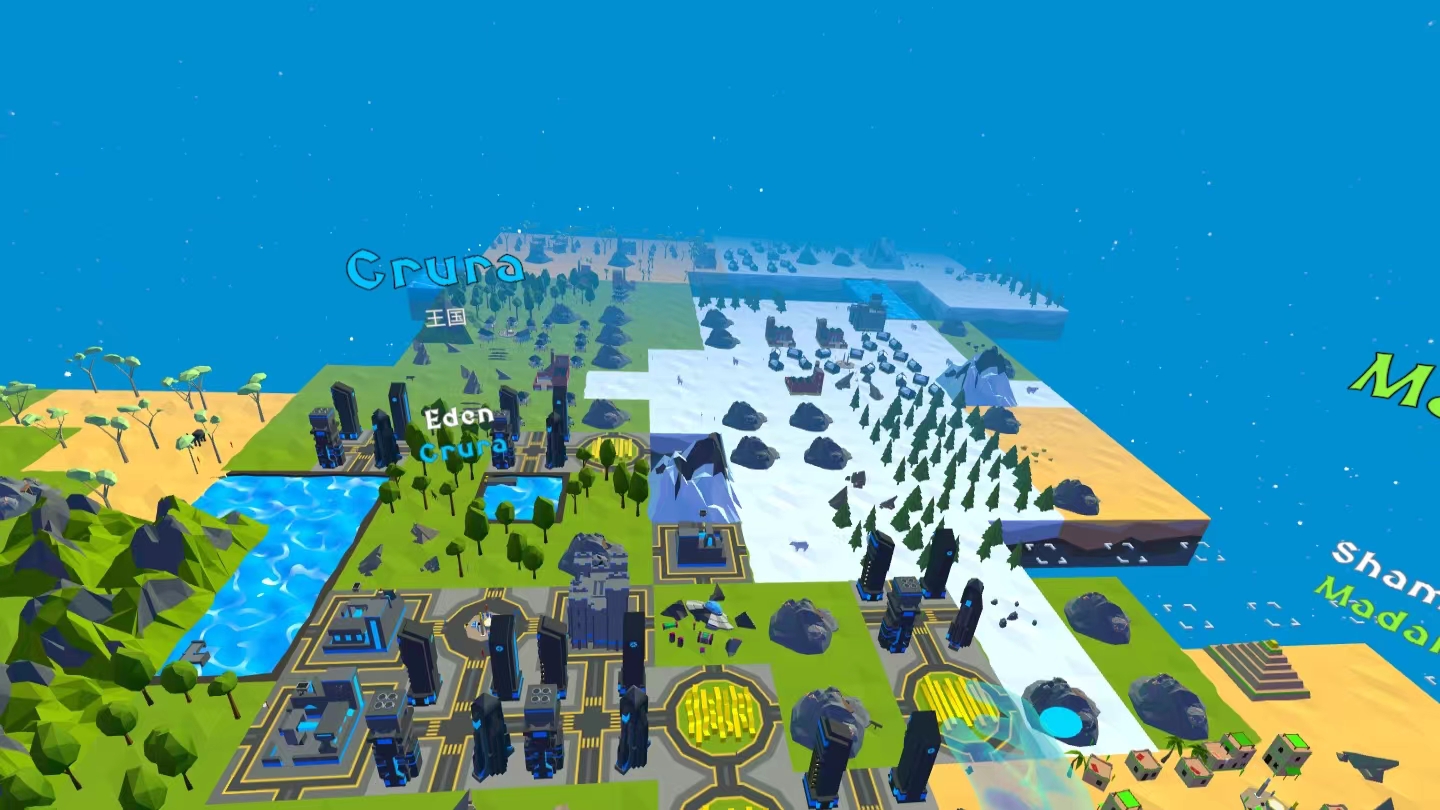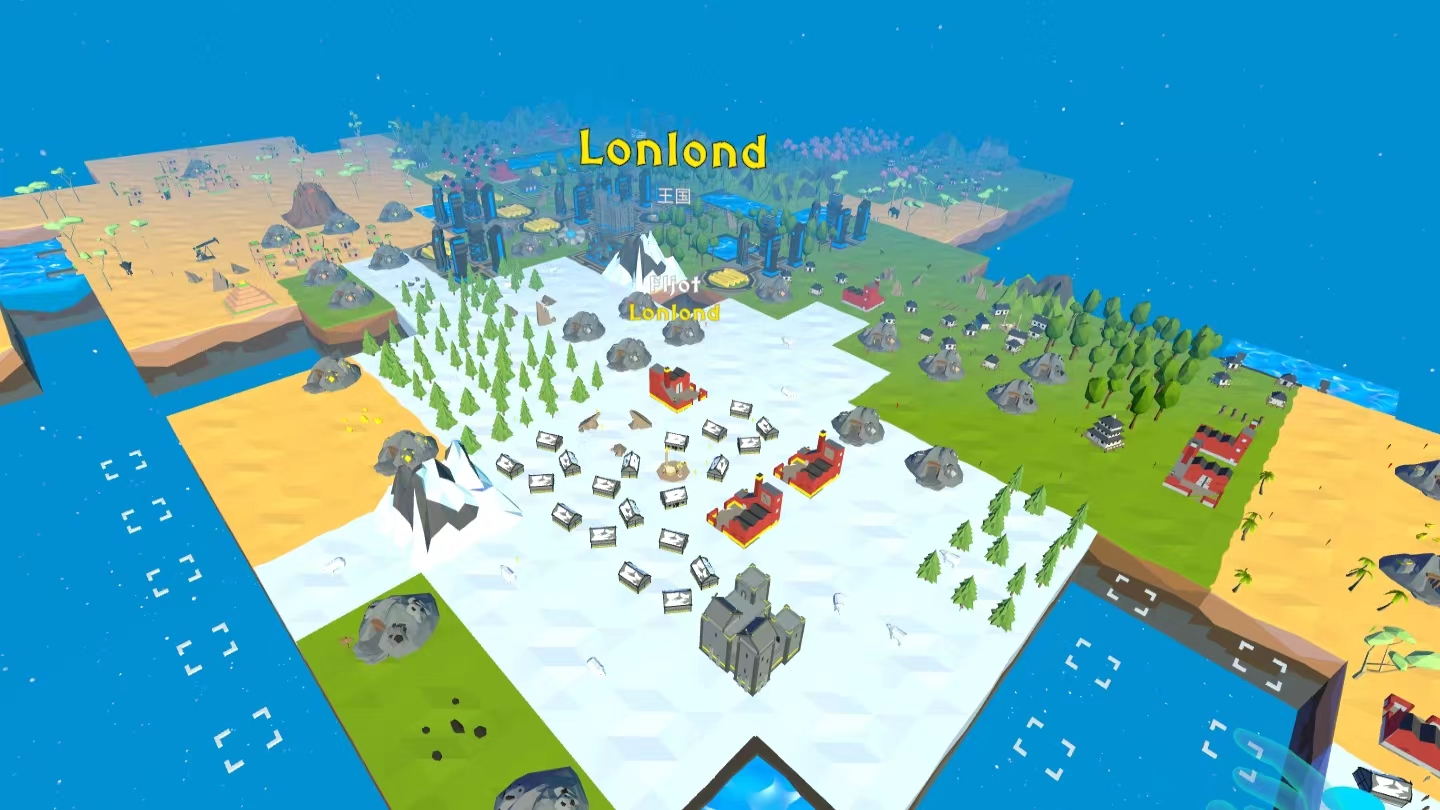 最后一个任务就是近未来的士兵了。到了近未来这个时候,国王就会到处征战,我们就在祭坛等着,随手抓一个白头盔的士兵就行了。所以近未来如何快速达到呢。结论就是每种类型的土地都需要建立王国,然后缺啥就给啥就行了。另外每块土地都需要4到5片的矿场和空地在矿场周围,这样他们自家文明就会快速发展了。其中工具需要草原文明,武器需要冰川文明,珠宝和石油都需要沙漠文明。下面就是几个文明的发展的到游戏后期的现状。