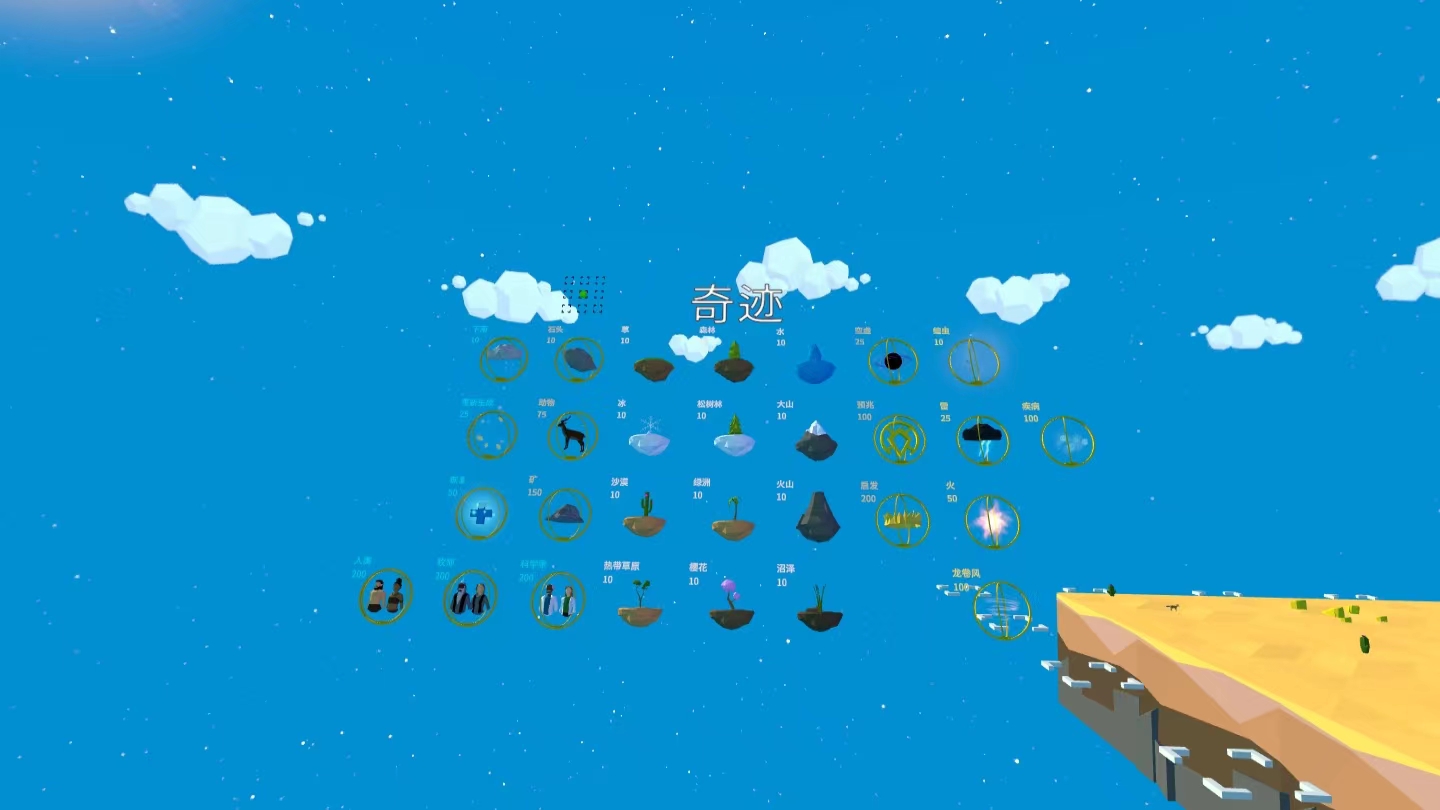 第一次进去我还不清楚怎么玩,就到处种树,然后冰川沙漠出现了,我也到处丢。接着每个奇迹我都试了一遍,结局大家也知道,还没成型的世界就被各种风雨雷电火给灭世了。作为我的子民太可怜了。接着我就读取存档,重新玩了一遍。不过由于还是新手,又是一阵乱放,虽然国王是建立,异教徒也看见了。不过感觉离任务还是十万八千里。算了算了。我就去找了下攻略看看怎么快速通关。接下我们看看第一个任务国王怎么建立,其实就丢一个启发的奇迹就行了,你可以丢草原冰川沙漠都可以,丢了后立马就出现一个国王。