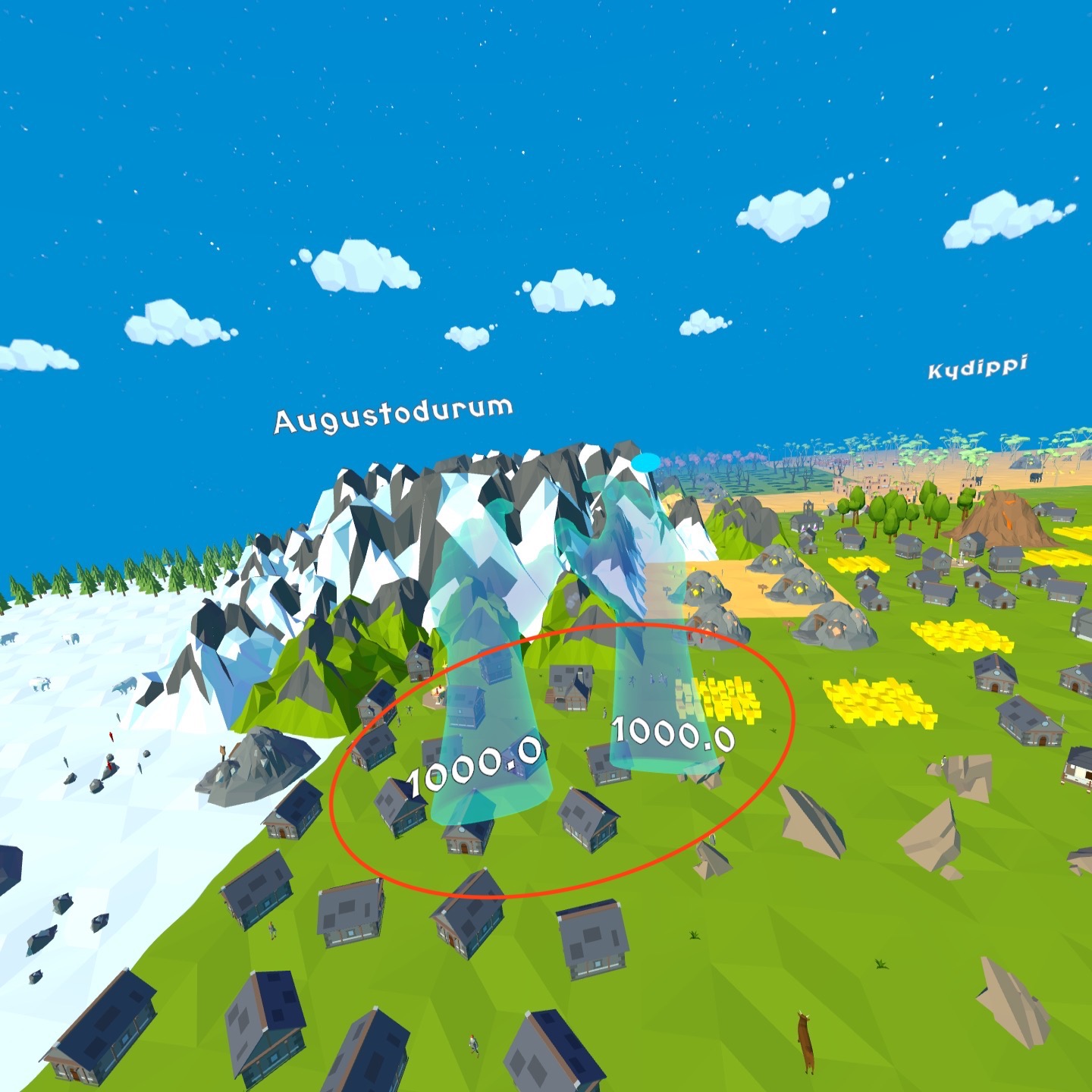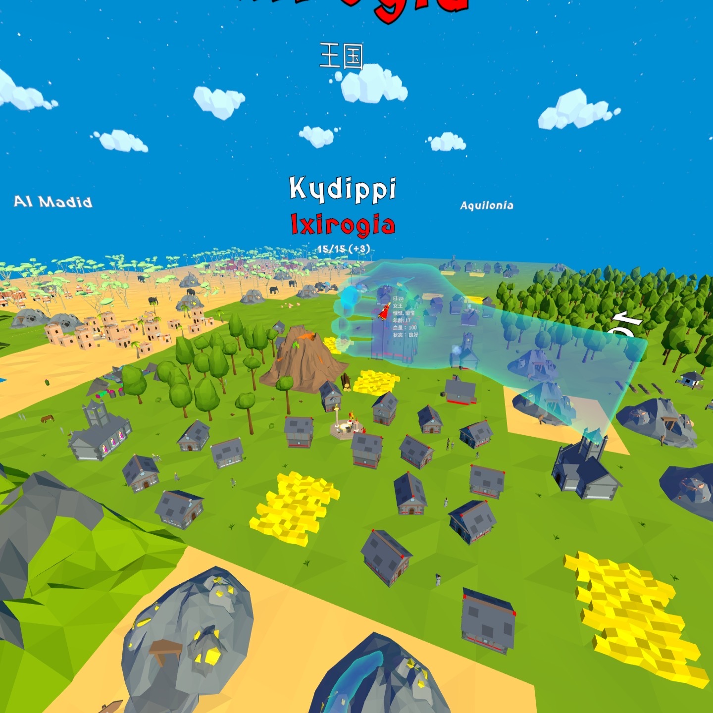 当城市发展到一定的程度的时候就可以手动建立王国,建立方法就是在城市中心有两个柱子看起来像祭坛的地方投放“启发”,价值200能量。投放后城市就成为首都,能看到一个头上有金色光环的人就是国王,用你的上帝之手抓住他截图(截图方法:按一下pico键,就是手柄上凹下去那个键,然后在弹出的界面里选择??图标选择截图到排行榜,回到游戏再按一下pico键就完成截图并上传排行榜了)正常的王国名称是蓝色,异教徒建立的王国名称是红色,这就说到第二个任务建立异教徒王国,策略就是选择一个城市疯狂放置科学家,不要放置牧师,很快这个国家就会叛变了。