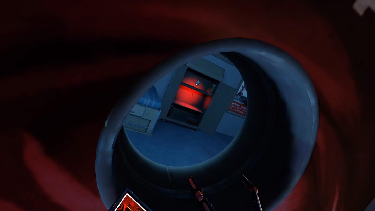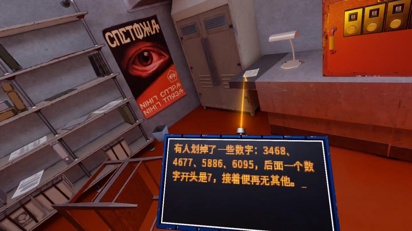 在隐藏的监控室的墙壁上,居然有个偷窥洞?!同过洞口你可以扫描那个柜子里面的身份卡,同时你也可以看到你需要的小兵棋子就在里面。