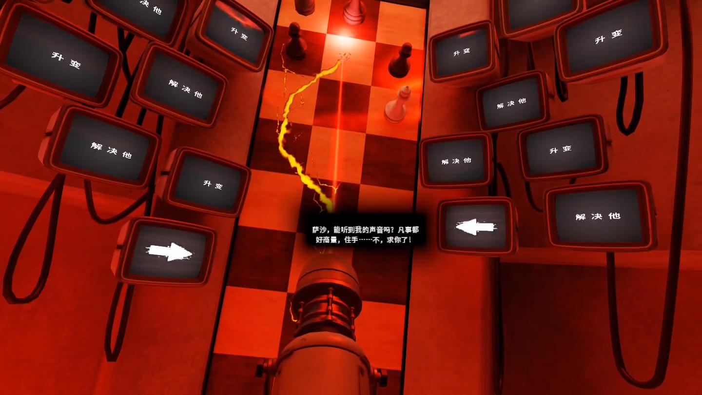 拿到棋子,就可以去有棋盘门的房间,打开通道绕过被红色物质覆盖的大门。