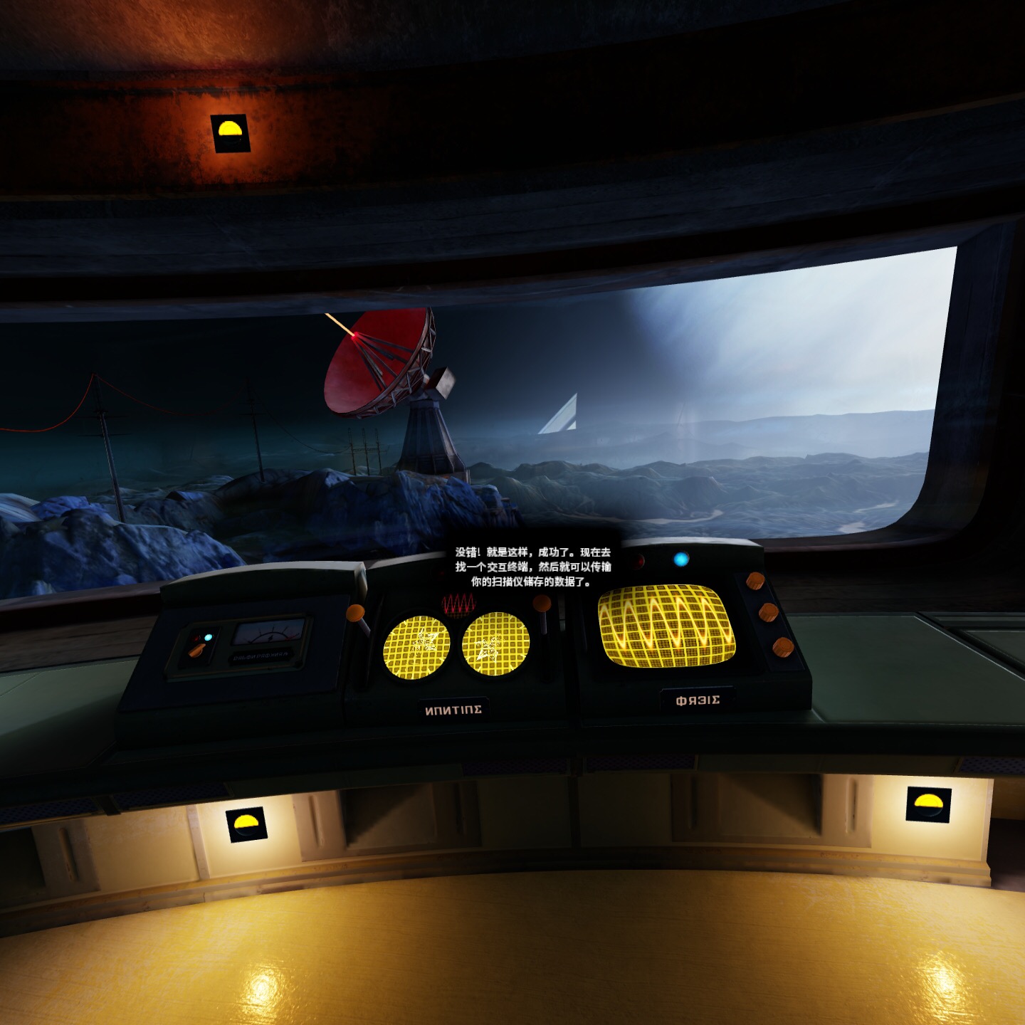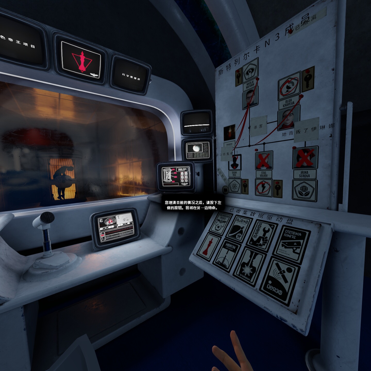 在通讯室左侧桌子上面~旁边桌上也有个红色光盘,扫描后里面也有个高能预警需要注意~