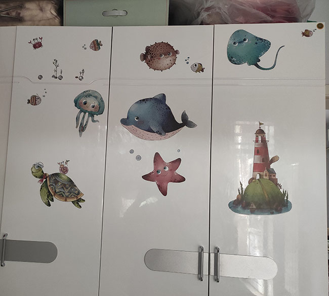 晒图!喏,我专门买的卡通贴纸,代替了过去挂满的衣服