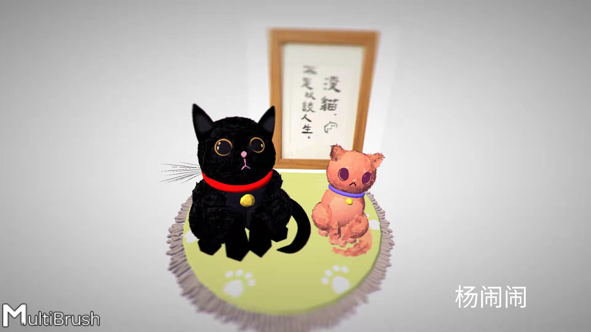 使用椭圆形、圆形辅助线,哑光外壳、尖刺笔刷完成一个立体的《猫》