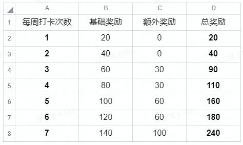每周累计打卡奖励: