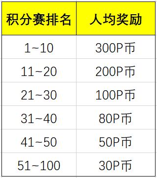 1. 当日在积分赛中获得至少一场胜利的玩家即可获得当日 20 P 币的奖励;