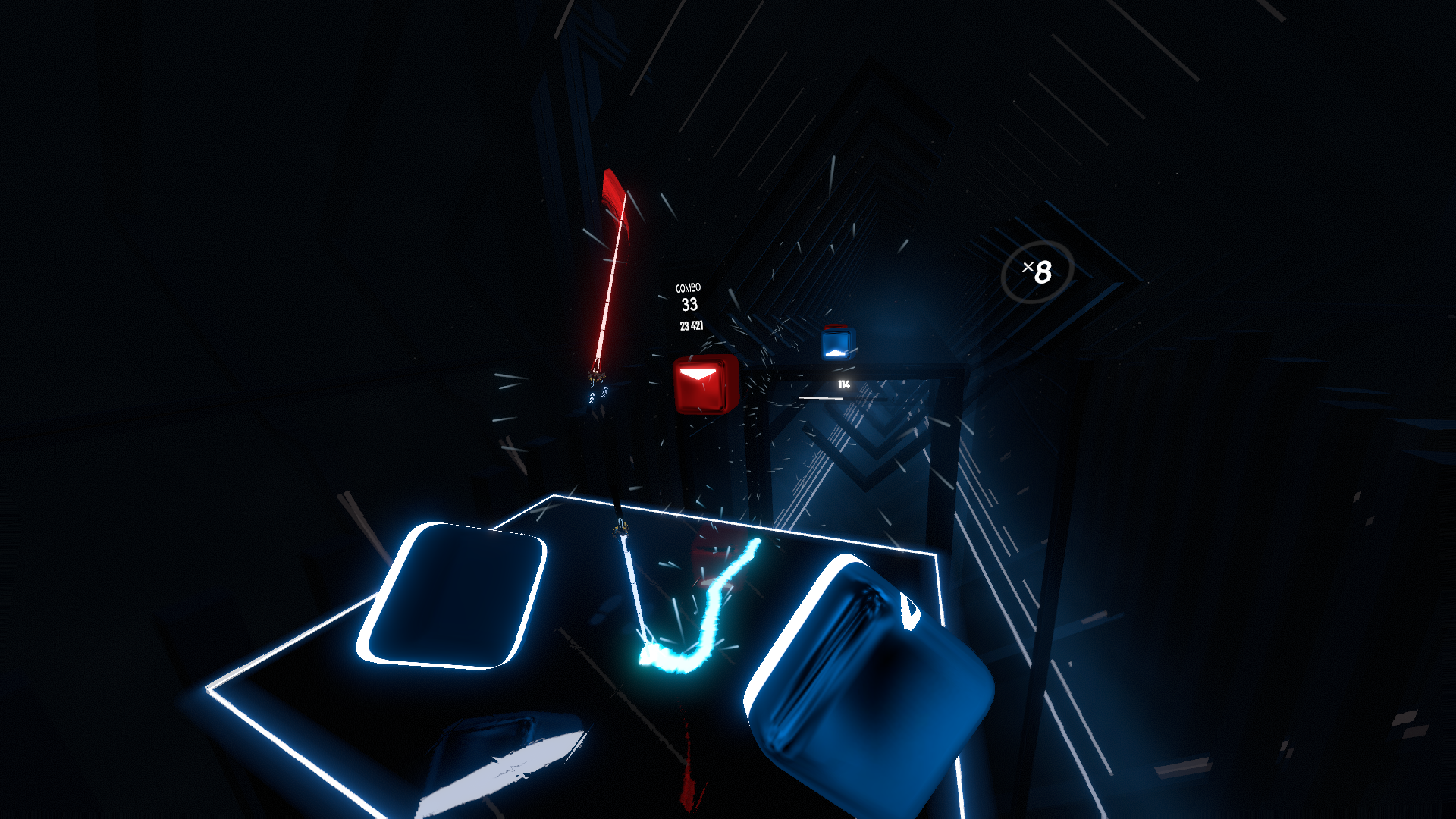 需要做MR视频,所以电脑录屏第三人称视角,没有任何问题, 这是房间,现在的问题是,站到这个位置上,总是提示无法定位,或者定位过后,显示无法追踪位置,导致正在玩游戏的时候出现一个提示框,提示无法追踪您的位置,这个有什么办法解决吗? 第二种情况,选择安全区选择无线模式的话,不再有提示框出现了,但是节奏光剑一首歌切下来,游戏场景会出现莫名其妙的悄悄往右旋转,身子也要跟着转动,这个能给他定位定死吗???