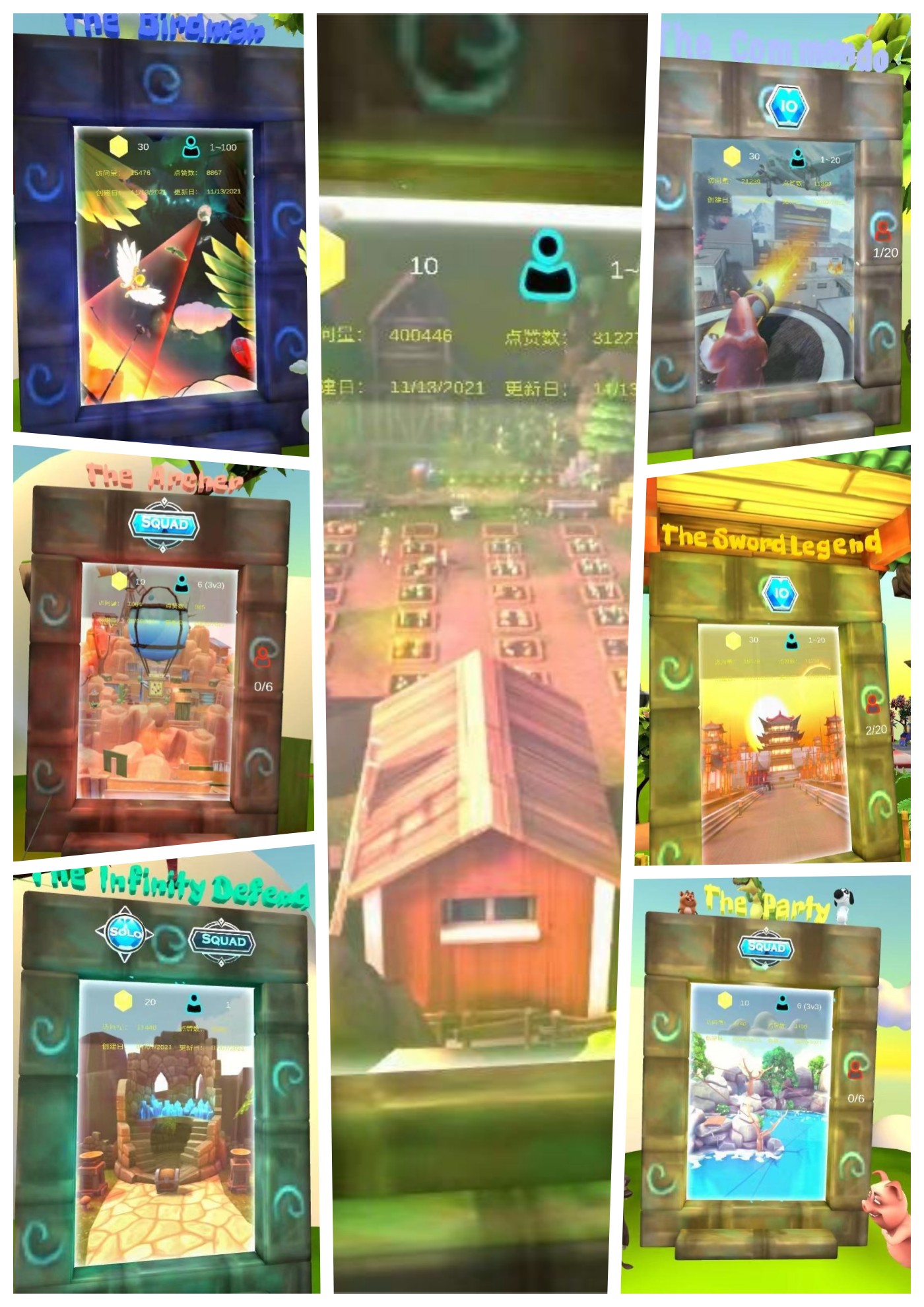 在「游戏大厅」,你可以体验鸟人飞行(The Birdman)、绝地出击(The Commando)、塔防(The Infinity Defend)、大乱斗(The Sword Legend)、PK射箭(The Archer)、泳池派对(The Party)和欢乐农场(The Farmland)等游戏。