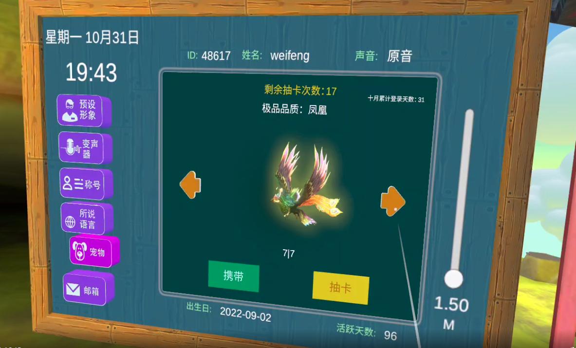 绑定邮箱后就可以使用抽卡随机获得永久跟随你宠物了,目前有恐龙、小土狗、企鹅、考拉熊、黑皮马、凤凰和独角兽七种宠物。