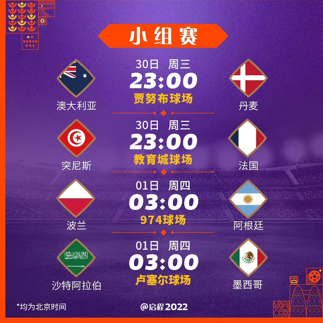 昨天又只对了一场。所以说,跟着一博反着来…… 关于11月30日12月1日世界杯场次,预测如下: 23:00 澳大利亚???? 0:1 丹麦???? 理由:麻了,不需要理由。 23:00 突尼斯???? 0:4 法国???? 理由:法国是冠军! 03:00 波兰???? 0:2 阿根廷???? 理由:喂,不是吧不是吧。不会有人以为阿根廷出不了线吧? 03:00 沙特???? 2:1 墨西哥???? 理由:相信沙特,创造奇迹! 个人看法,全是主观,不负责任,转需~