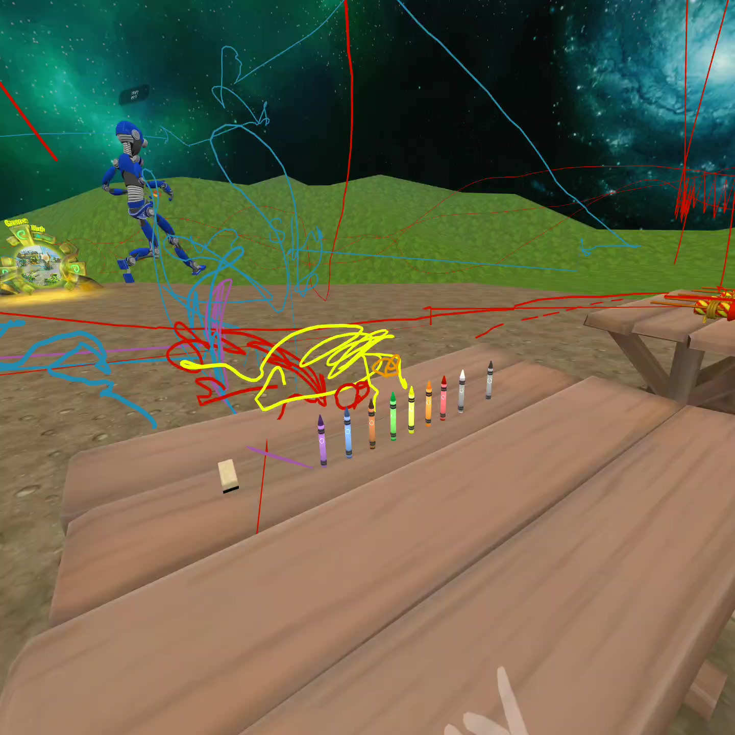 空间画笔大家可以在这里进行3D画笔的涂鸦,还可以拿着火箭筒上天入地。