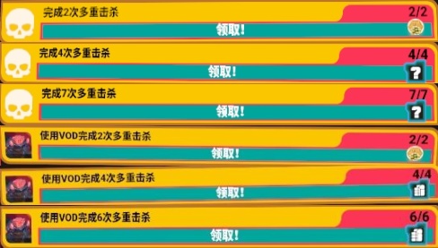 多重击杀指短时间内击杀2名以上敌人。这个对于攻击性的英雄来说比较容易完成。