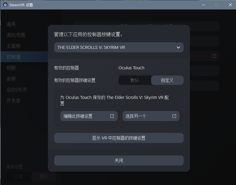 3.进入steamVR单独设置THE ELDER SCROLLS V: skyrimVR的控制器设置