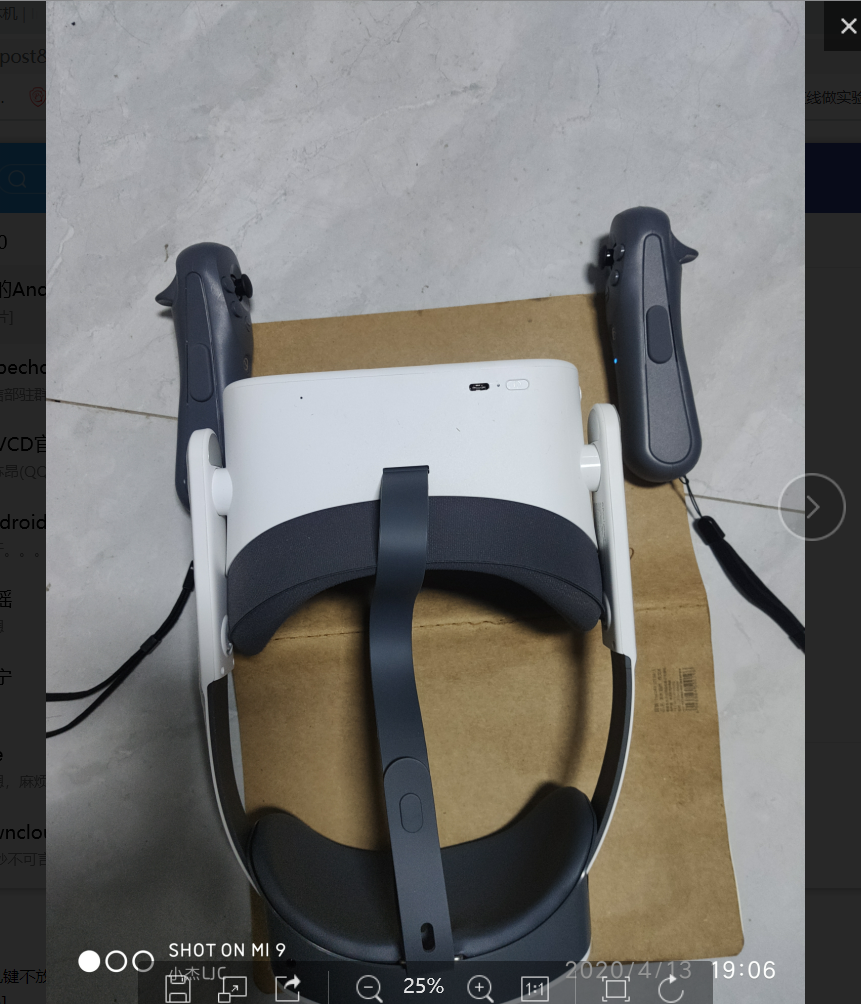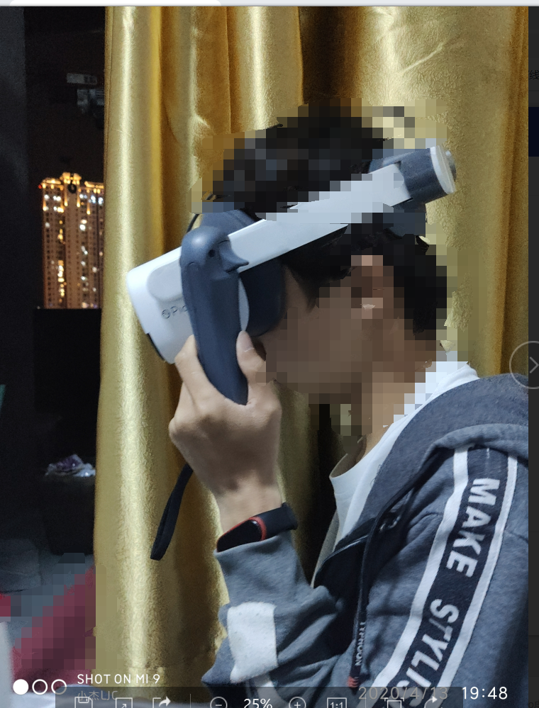 6、站起来。拿起一只手柄和Neo2戴在头上固定不要动(BS:不要全部带着。露出眼睛,走房间看障碍物) 图4