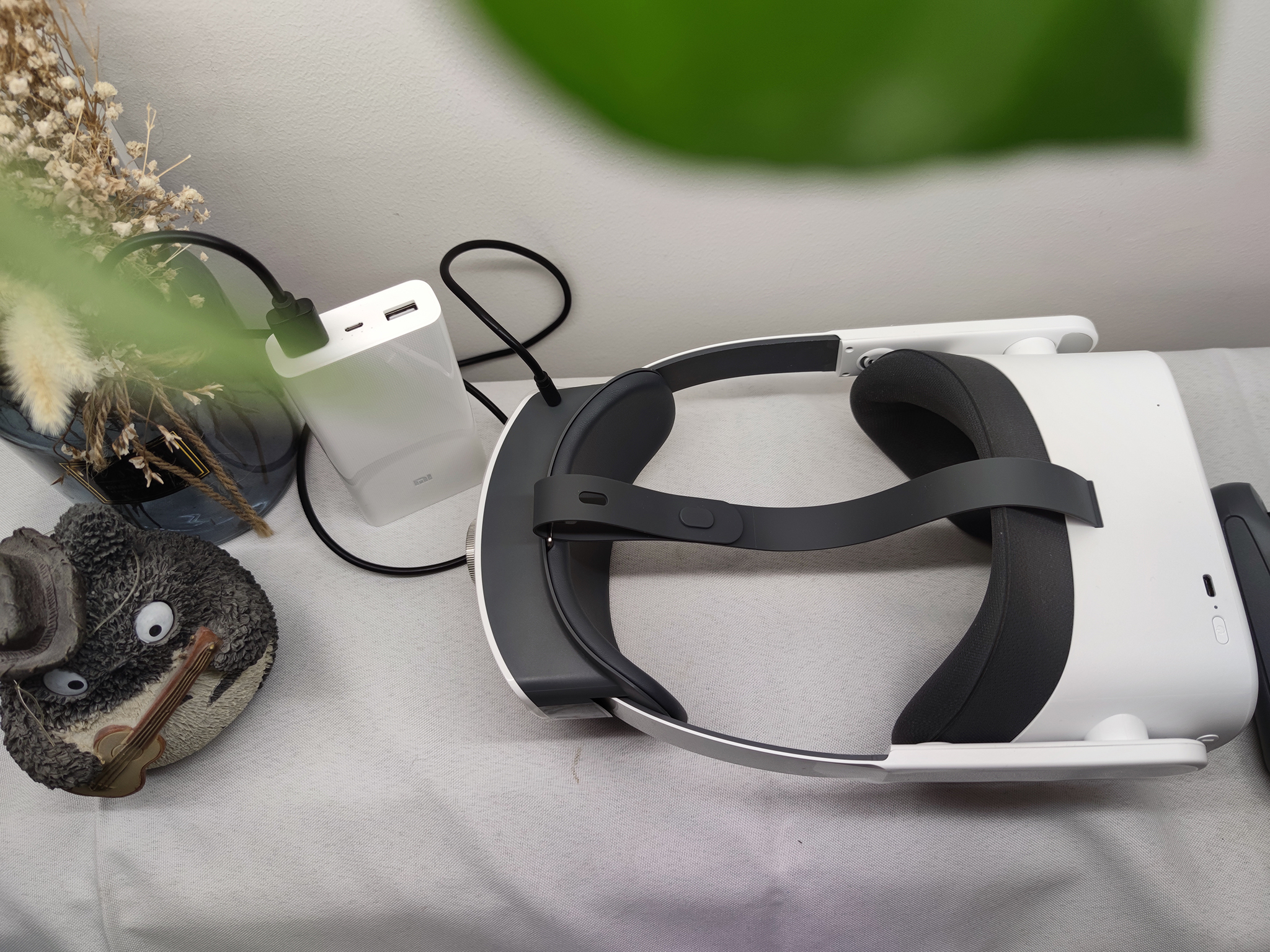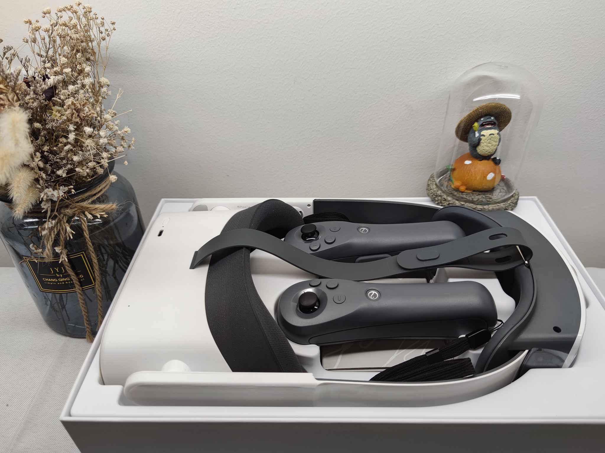 迟到的开箱,分享给大家1 首发全套:京东购入,送路由、便携包还有一堆福利 2 主角开箱:清爽简约的包装,手柄看起来高端但有点复杂,实际盲操很顺手 3 颜值漂亮:简洁的配色,两眼略萌 4 续航无限:脑后电池模块上方配有3.5mm DC供电口,可插移动电源放在背后、腰间,轻松续航 5 便携收纳:灰色PU材质收纳包,空间设计合理,外观简单大气 感兴趣的不妨入手试试{:4_87:}