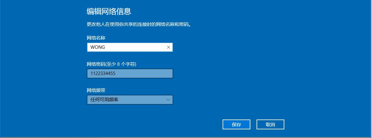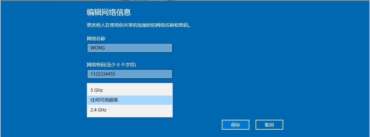 打开移动热点,设置自己喜欢的网络名称、网络密码,点击“编辑”按钮,选择5G频段,保存